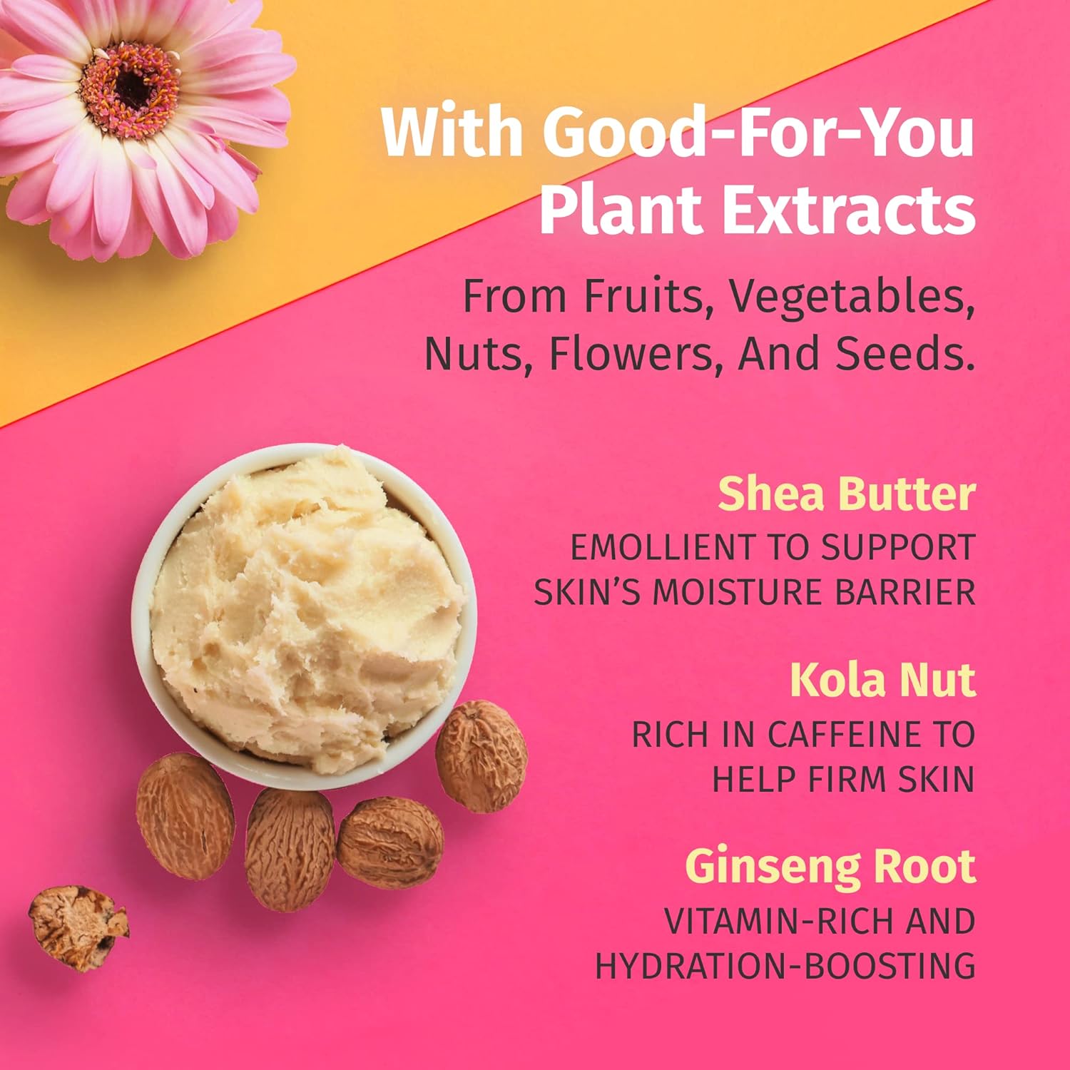 - Packed with Skin-Strengthening Botanicals β Shea butter, aloe, caffeine, algae extract, and polypeptides work together to deeply nourish, smooth, and condition for more resilient skin.
