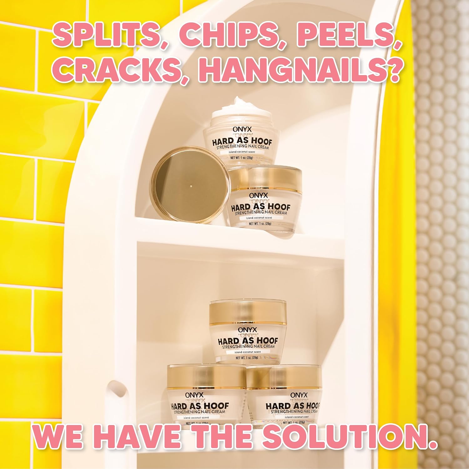 Onyx Professional Hard as Hoof Nail Strengthening Cream with Coconut Scent, Nail Growth & Conditioning Cuticle Cream Stops Splits, Chips, Cracks & Strengthens Nails, 1 oz