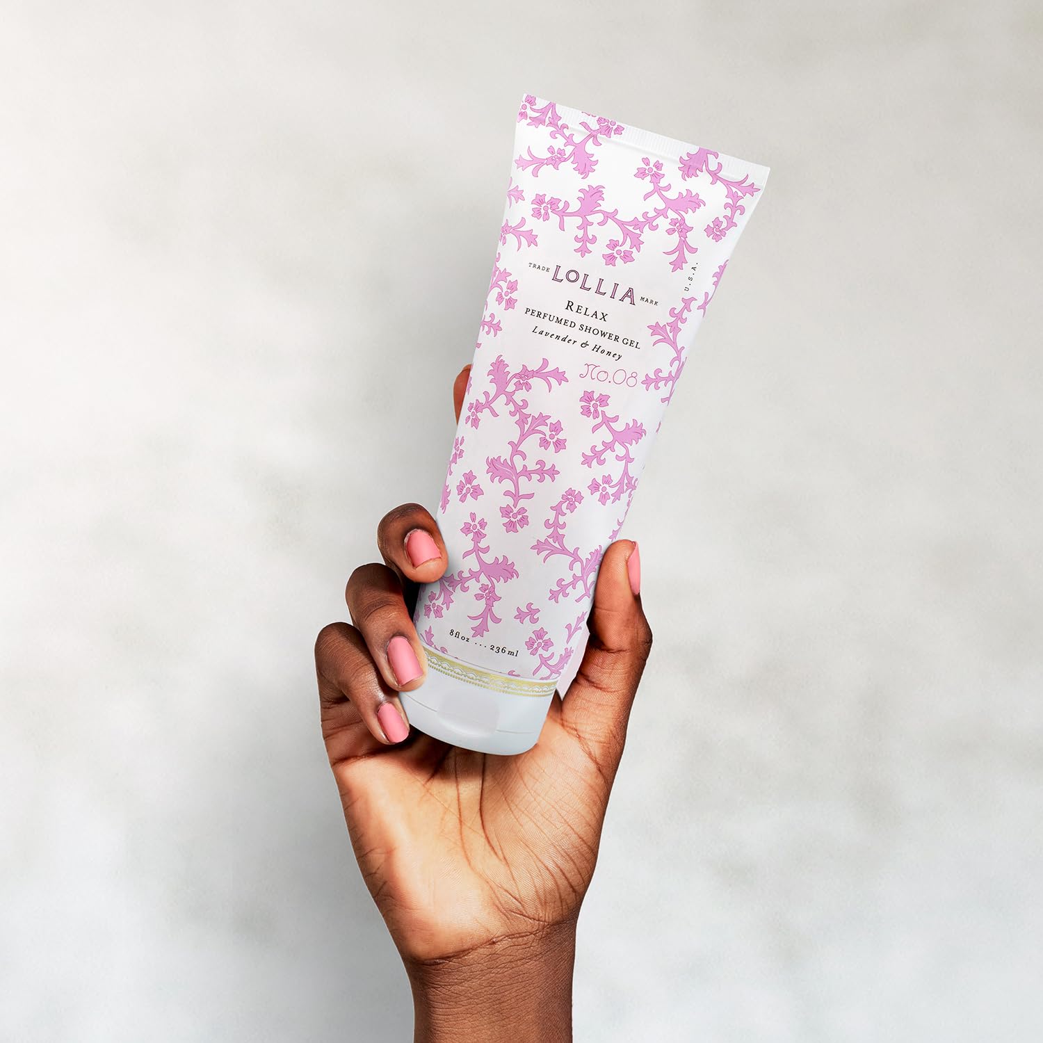 LOLLIA In Love Shower Gel, 8 fl oz, Classic Petals, Apple Blossom, Jasmine, & Living Rose, Luxury Shea Moisture Hydrating Women's Body Wash, Delicate & Relaxing Scented Bath Soap for Self Care