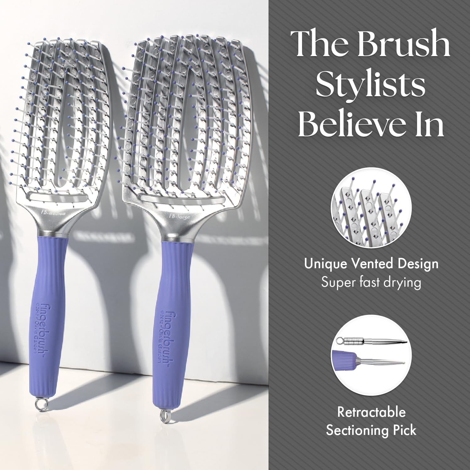 Olivia Garden Finger Brush Scalp-Hugging & Vented Paddle Hair Brush FB-LG (Large)