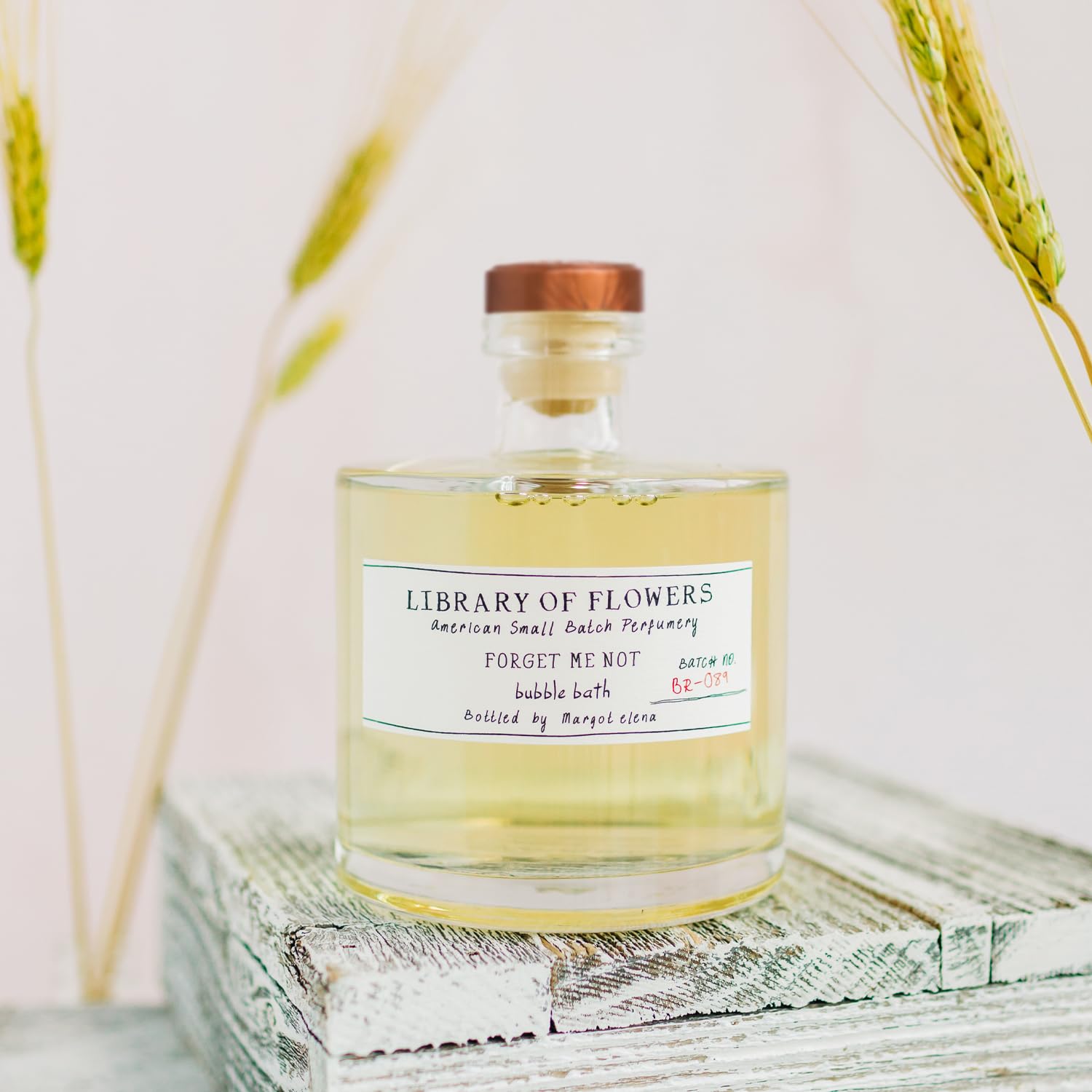 Library of Flowers Forget Me Not Bubble Bath, 17 fl. oz. - Osmanthus, Rice Powder & White Orchid – Relaxing & Gentle Bubble Bath Soap, Skin Hydrating & Deep Moisturizing, Avocado Oil & Green Tea