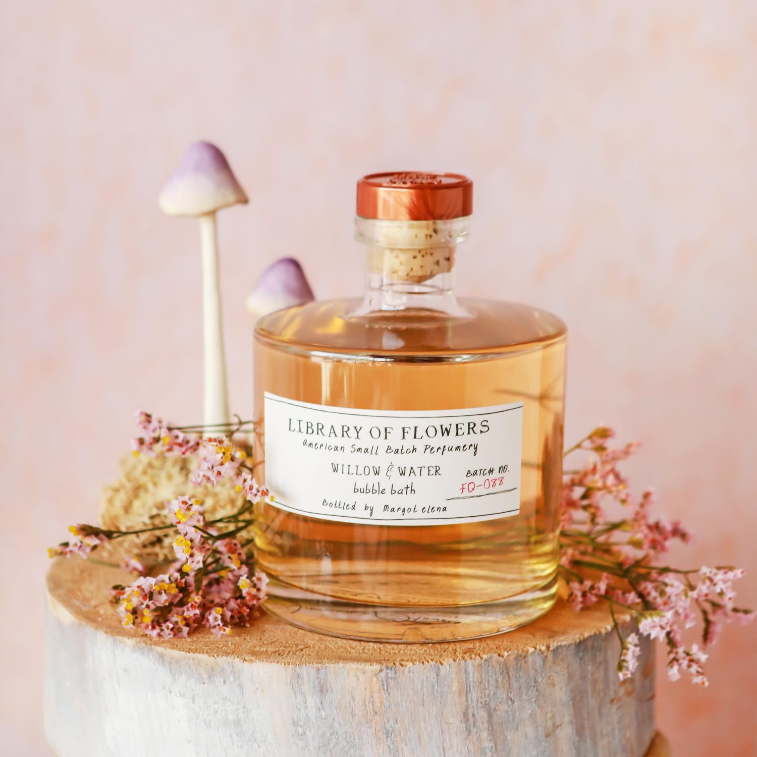 Library of Flowers Willow & Water Bubble Bath, 17 fl. oz., Cut Greens, Flowering Lotus & Watercress, Relaxing & Gentle Luxury Bubbling Soap, Hydrating & Deep Moisturizing, Cocoa Butter & Green Tea