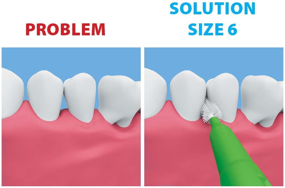 - Size 6 (Green): This set of 100 interdental brushes is engineered for effective cleaning in wider interdental spaces, making them ideal for individuals with larger gaps between teeth, orthodontics or perio.