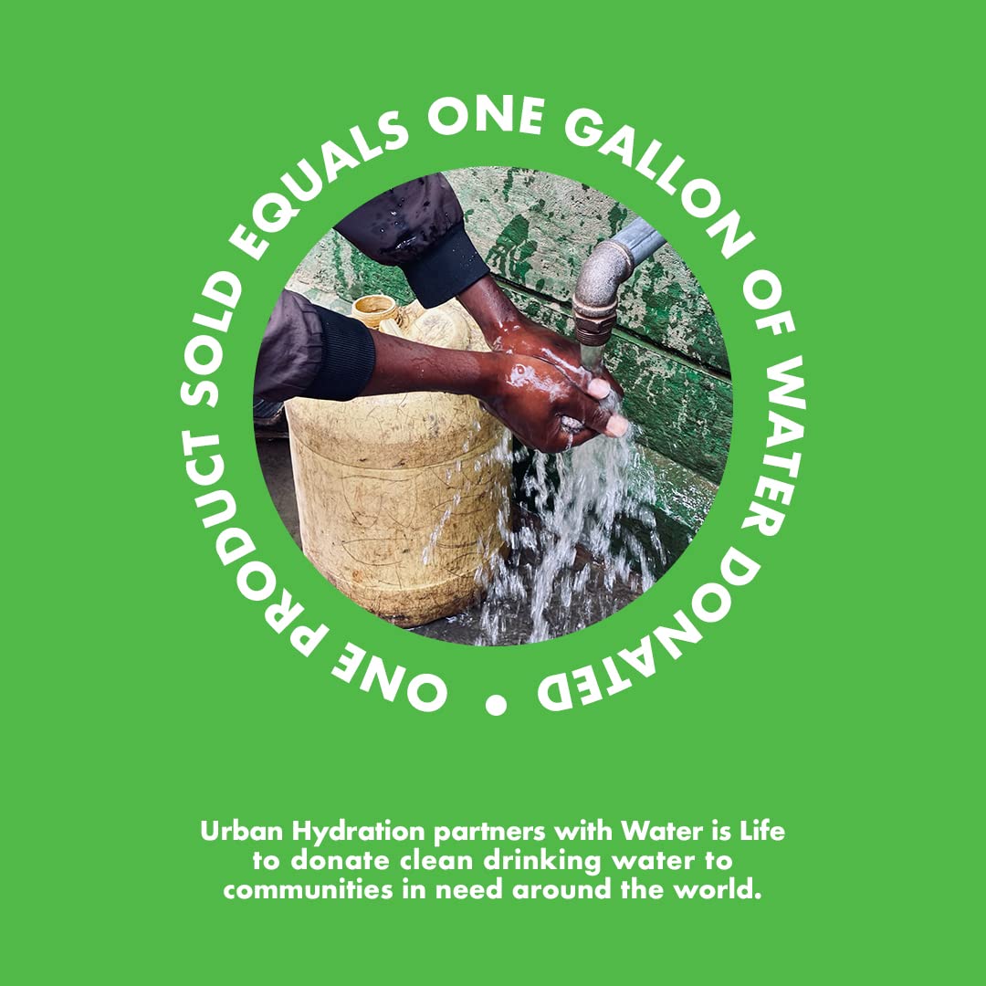 - ABOUT US: Urban Hydration values community and giving back. With our collective efforts, we aim to be a force for global good. For every product sold, 1 gallon of water is donated, enabling communities without access to clean drinking water to Urban Hydration's clean water donations. Be part of the global impact and movement