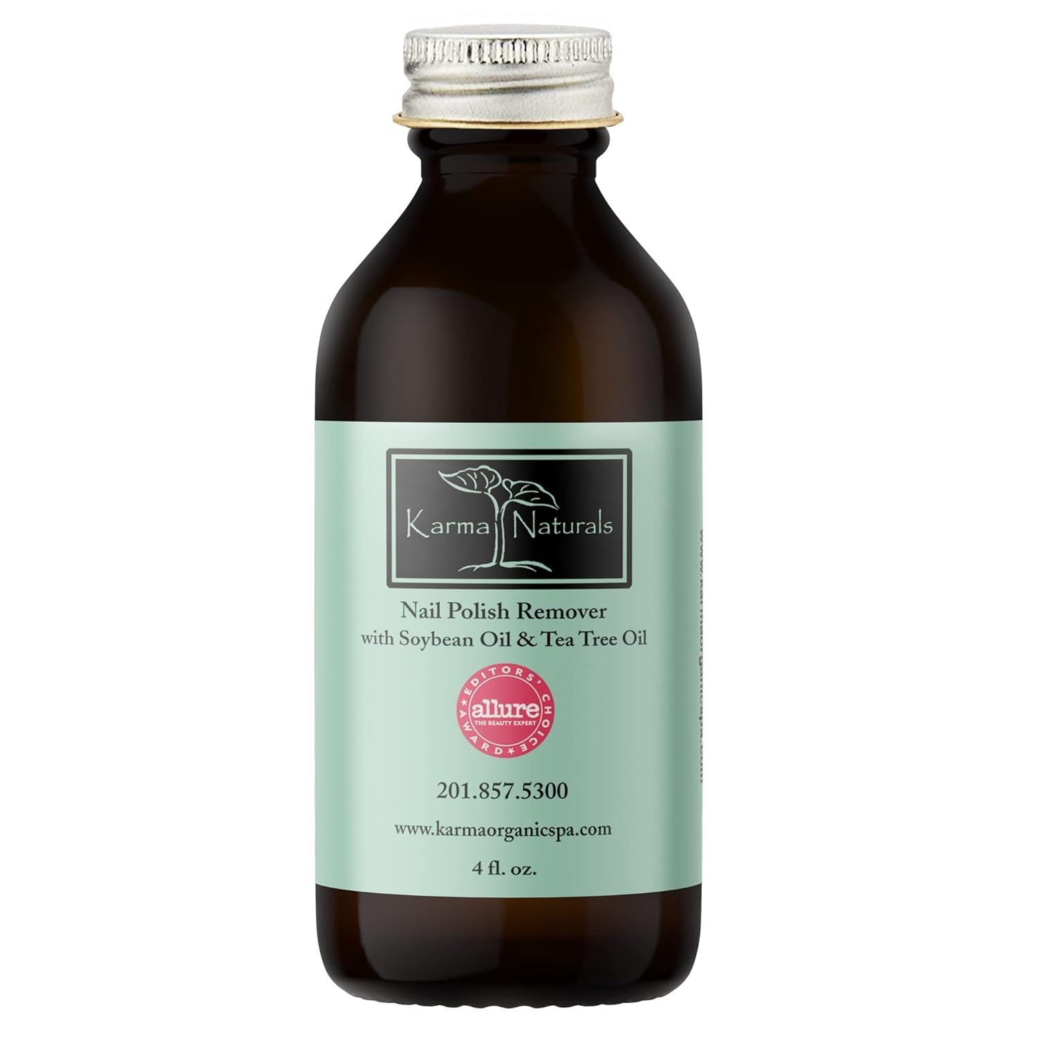 Karma Organic Nail Polish Remover with Soybean Oil and Tea Tree Oil- Non Toxic, Vegan, Cruelty Free, Acetone Free – Nails Strengthener for Fingernails – 4 fl. Oz
