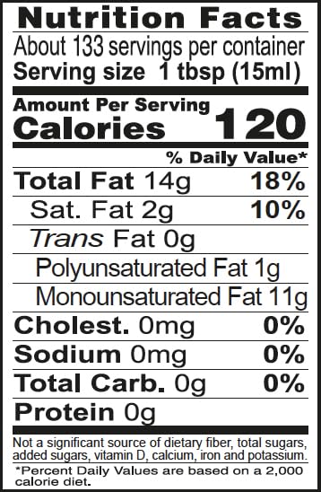 - Certified you can trust: NAOOA Quality Seal (tested to IOC standards) and OU Kosher; 0g carbs, 0mg sodium, cholesterol free (per tbsp).