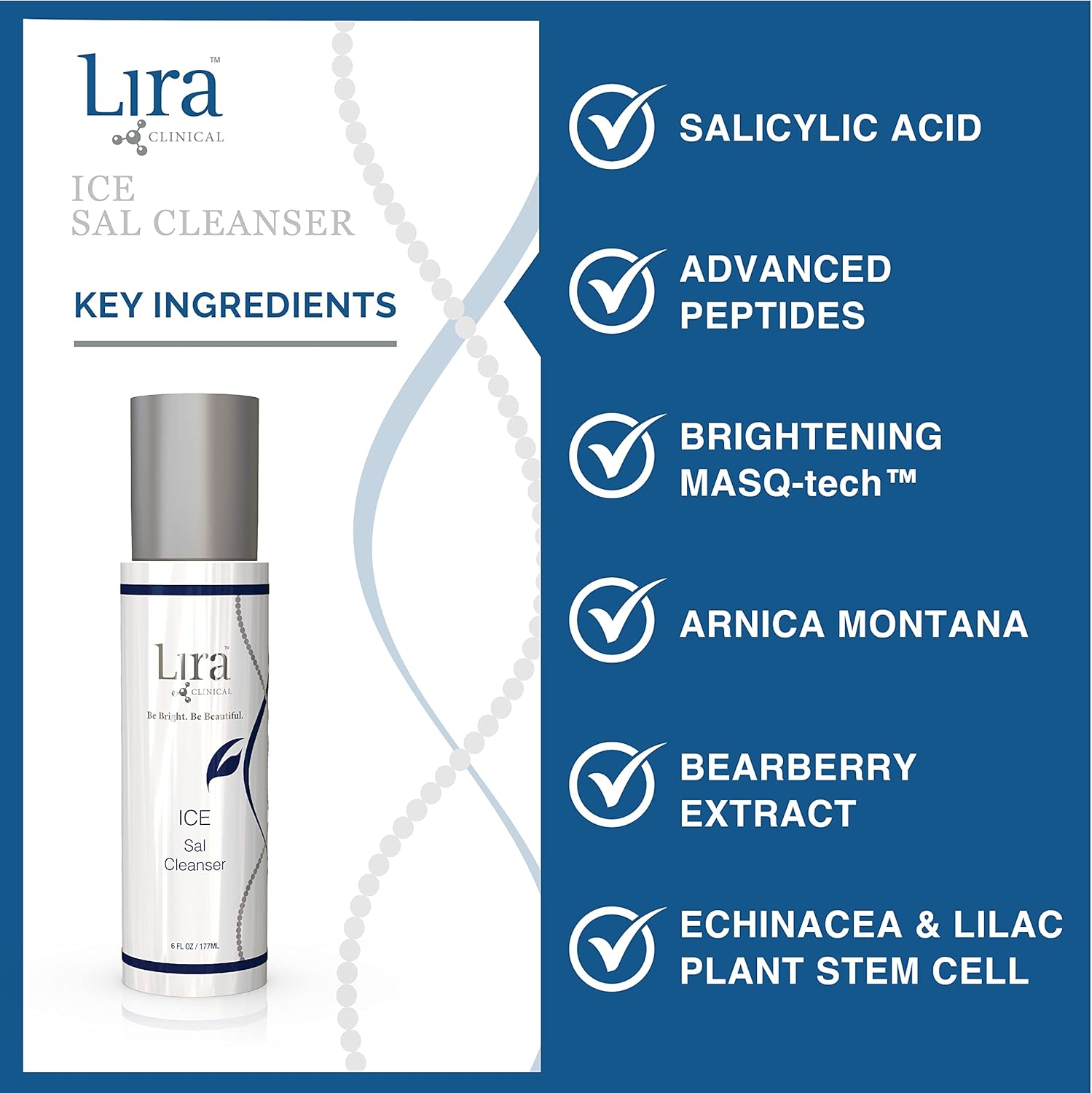 Lira Clinical ICE Sal Cleanser – Salicylic Acid Face Wash with Plant Stem Cells, Echinacea and Peptides – Cooling Exfoliating Facewash – Gentle Clarifying Travel Size Daily Facial Cleanser - 6 Oz