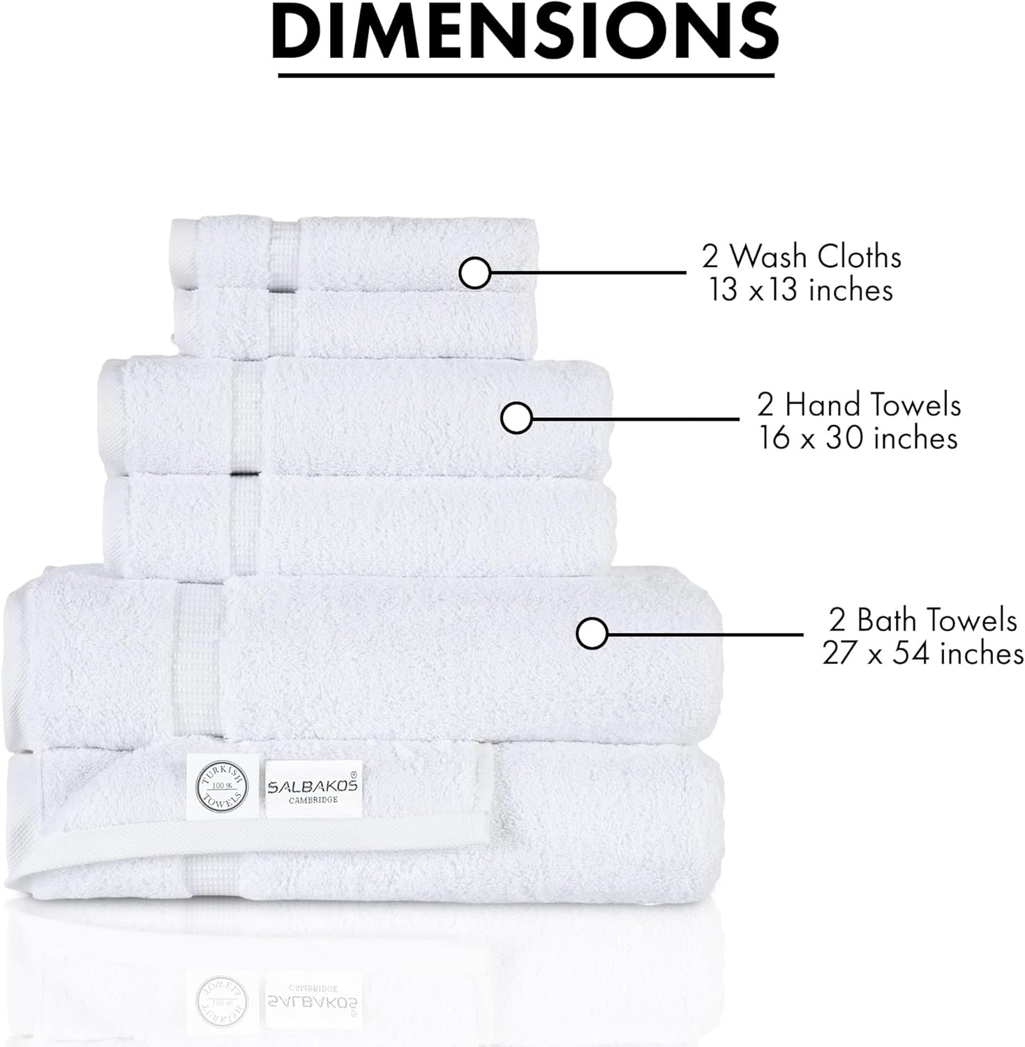 SALBAKOS 100% Turkish Cotton 6-Piece Towel Set | Heirloom Quality Hotel & Spa Collection | Soft, Super Absorbent 2 Washcloth, 2 Hand, 2 Bath Towel Sets | Made in Turkey (White, 6 Piece Towel Set)