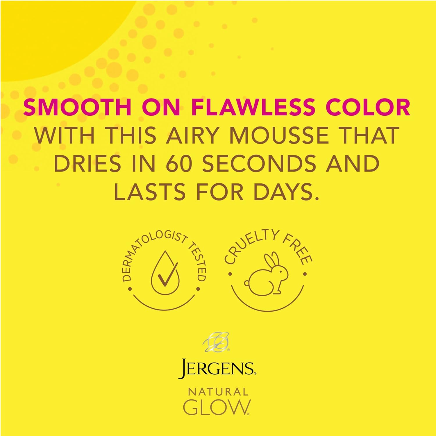 Jergens Natural Glow Instant Sun Body Mousse, Self Tanner for Deep Bronze Tan, Sunless Tanning Body Bronzer for Natural Looking Color Instantly, 6 Oz