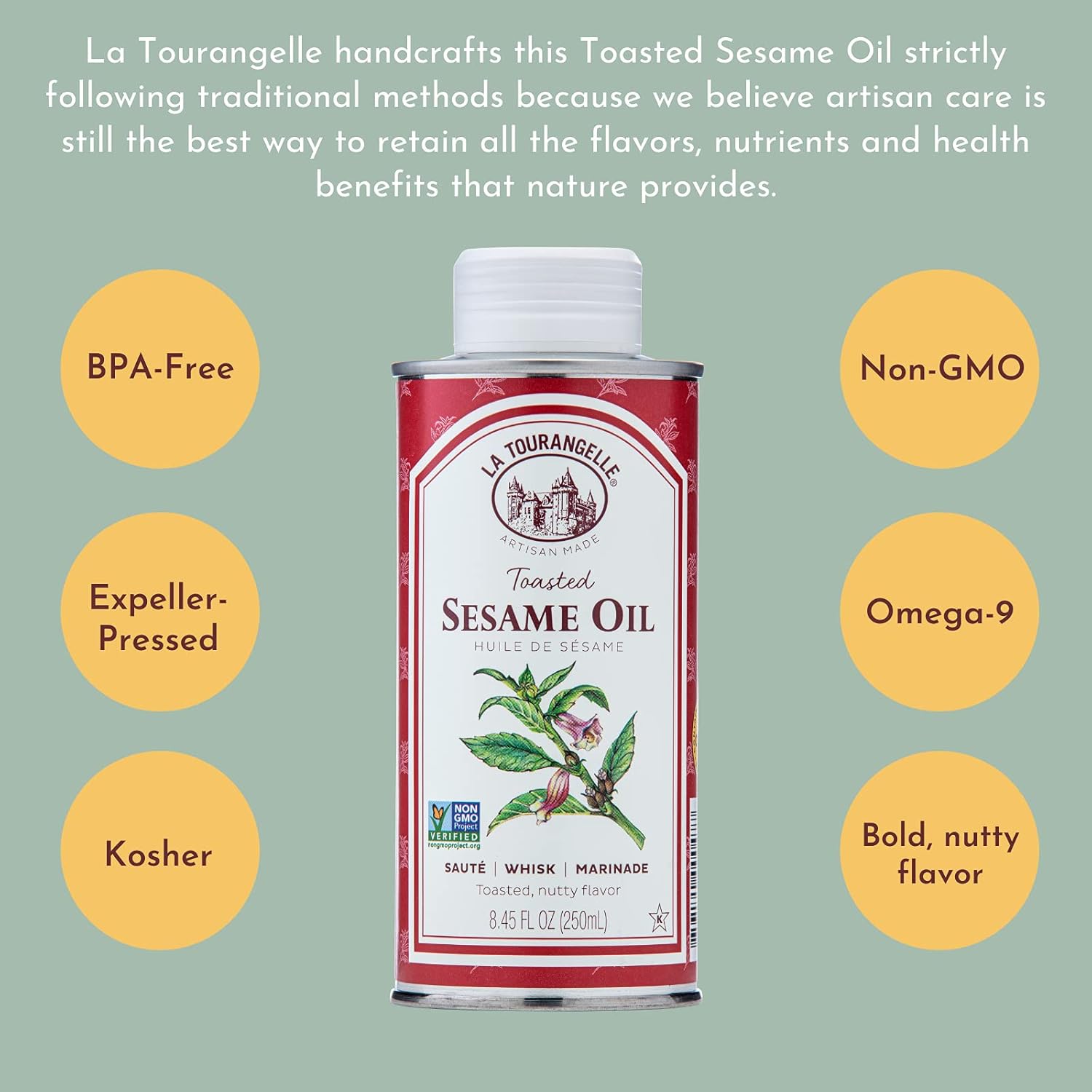 La Tourangelle, Toasted Sesame Oil, Great for Cooking, Add to Noodles, Stir-Fry, Vegetables, Vinaigrettes, and Marinades, 8.45 Fl Oz