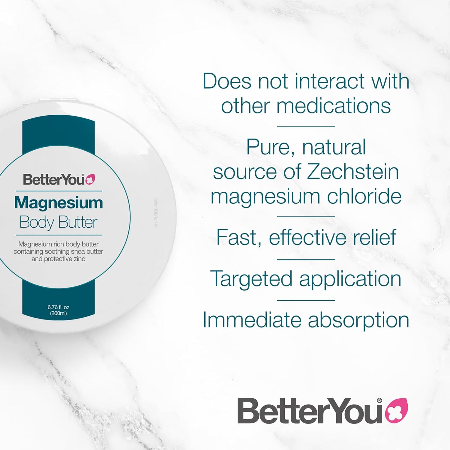 - DERMATOLOGICALLY TESTED. BetterYou Magnesium Body Butter has also passed the most rigorous of trials so that you can be confident of its suitability for, and effective support, of the most sensitive skin conditions and the harshest of modern environments.