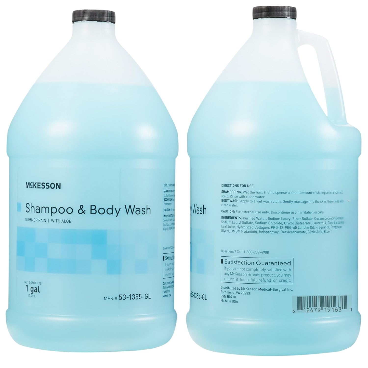 McKesson Body Wash and Shampoo - 1 Gallon Bulk Refill Full Body Wash with Aloe, Summer Rain Scent - Sensitive Skin & Hair 2‑in‑1
