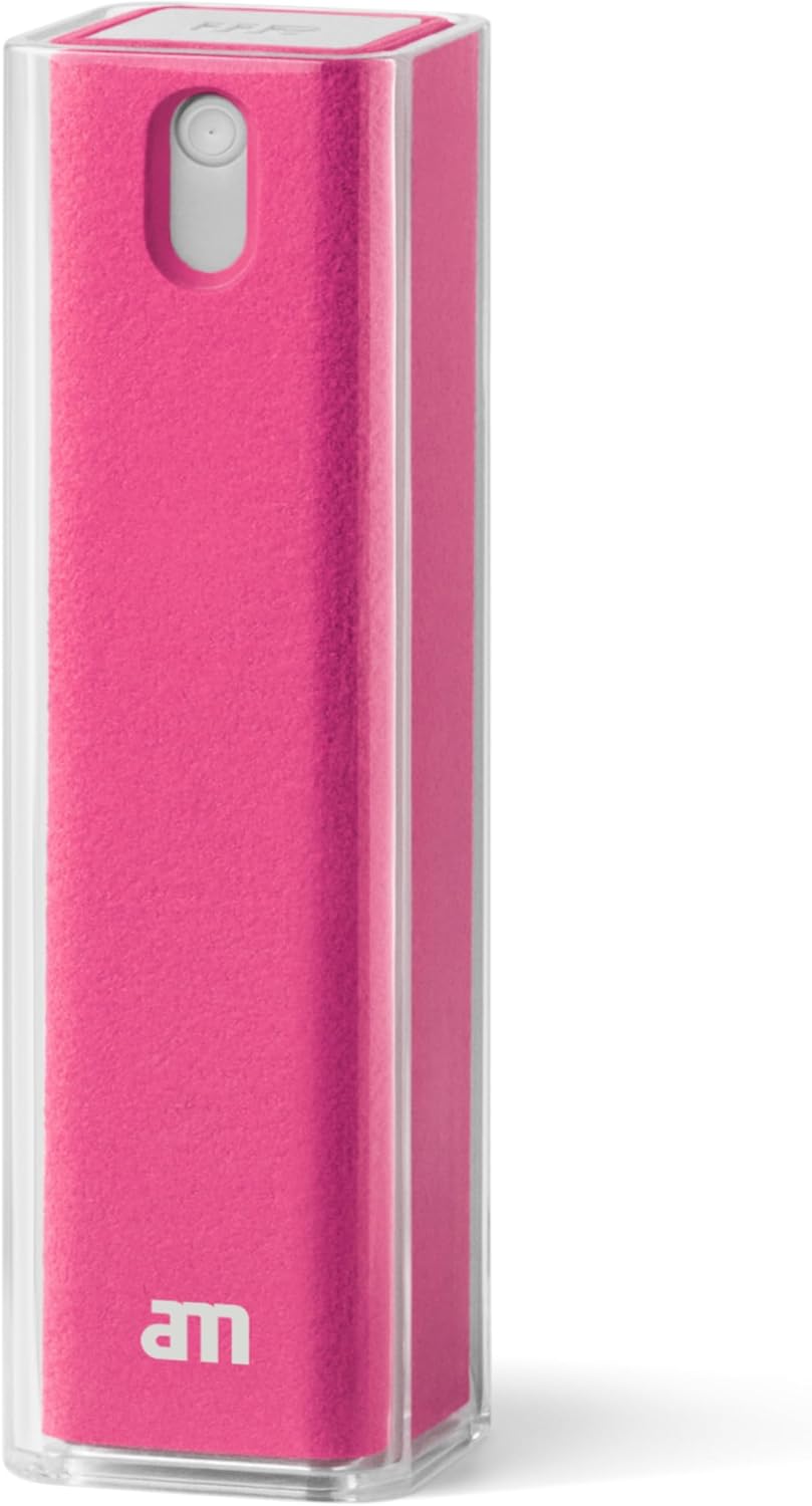 am Screen Cleaner Mist Spray with Microfiber Cloth Around β Alcohol-Free, Streak-Free Screen Cleaning Kit for Smartphones, Tablets, Laptops, Smart TVs & Car Screens, 1 Pack, Pink