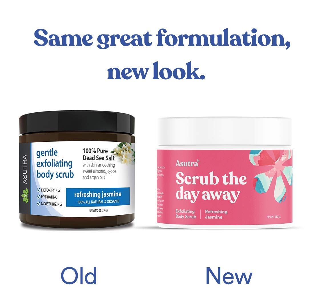 ASUTRA Dead Sea Salt Essential Oil Body Scrub Exfoliator (Refreshing Jasmine), 16 oz - Ultra Hydrating, Gentle, & Moisturizing - Coconut, Jasmine, and Frankincense Oils