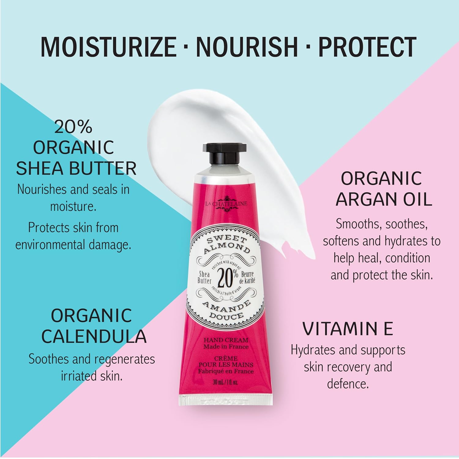 La Chatelaine 20% Shea Butter Hand Cream Travel Size Tin, Gift Set for Women, Nourishing Hand-Care Set for Holiday (Coconut Milk, Shea, Lychee Cranberry)