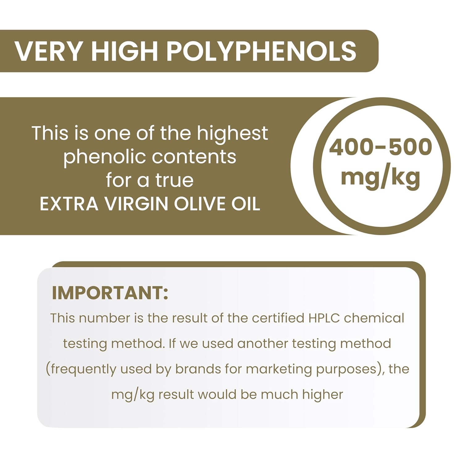 P.J. KABOS 2024/25 Harvest, High Phenolic (450+mg/kg), Premium Greek Extra Virgin Olive Oil, Kosher, Greece, Cold Extracted, 16.9 oz Tin, Koroneiki, "Family Reserve - Medium"