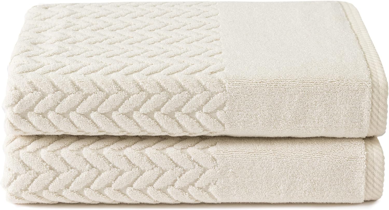 Texere 100% Organic Cotton Jacquard 650 GSM Premium Bath Towel Sets - Extra Absorbent Quick Dry and Plush (Cable, Birch, 2 Bath Towels)
