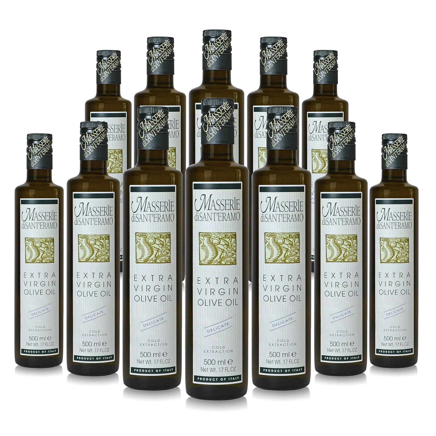 Delicate Italian Extra Virgin Olive Oil Cold Pressed - Light Olive Oil for Cooking and Frying, Imported from Italy - Masserie di Sant'Eramo - 16.9 Fl Oz (Pack 12)