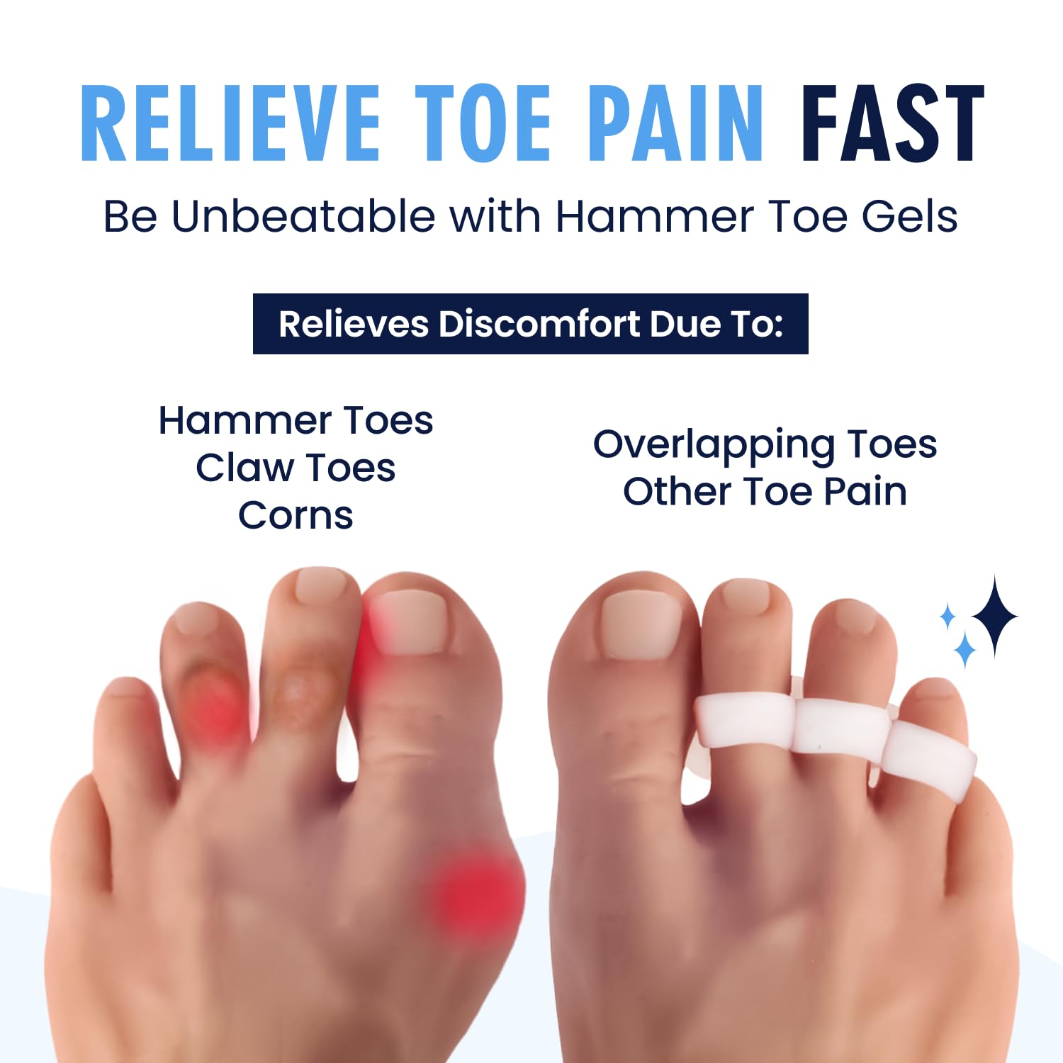 - Be Unstoppable: Our proprietary gel technology doesn't just provide hammertoe relief—it reconnects you with the activities you love. Whether it's dancing at your child's wedding, hiking a new trail, or enjoying discomfort-free shopping trips, our durable toe support gets you back to living fully. Engineered for extended wear, our silicone and latex-free formula is gentle on sensitive skin, easy to wash, and designed to be reworn countless times so nothing stands between you and your next adventure.