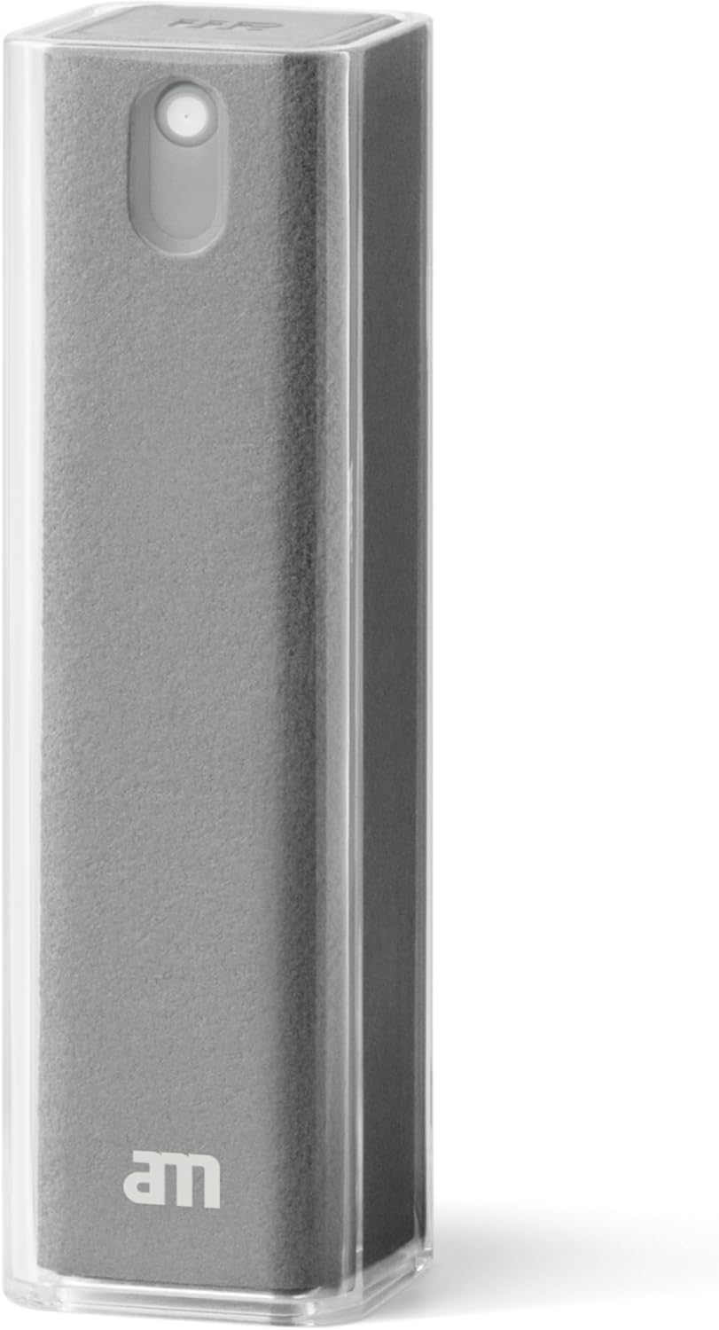 am Screen Cleaner Mist Spray with Microfiber Cloth Around – Alcohol-Free, Streak-Free Screen Cleaning Kit for Smartphones, Tablets, Laptops, Smart TVs & Car Screens, 1 Pack, Gray