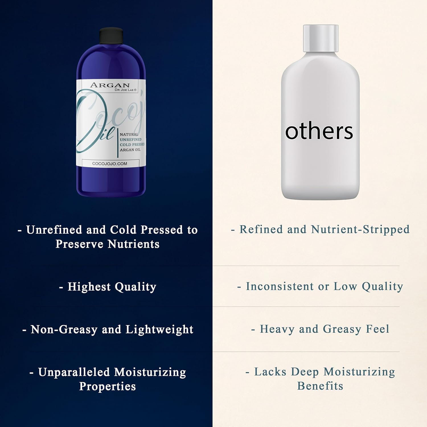 - Cocojojo Argan Oil, also known as Moroccan Argan Nut Oil or Marrakesh Oil, is obtained through the cold-pressing technique which extracts the oil without using heat, which would otherwise denature the nutrients in the oil. It is also unrefined, so it is pure, unprocessed oil. This natural ingredient is great for formulating beauty and cosmetic products, used as a carrier oil for essential oils, massage oils, and moisturizer for skin and hair!
