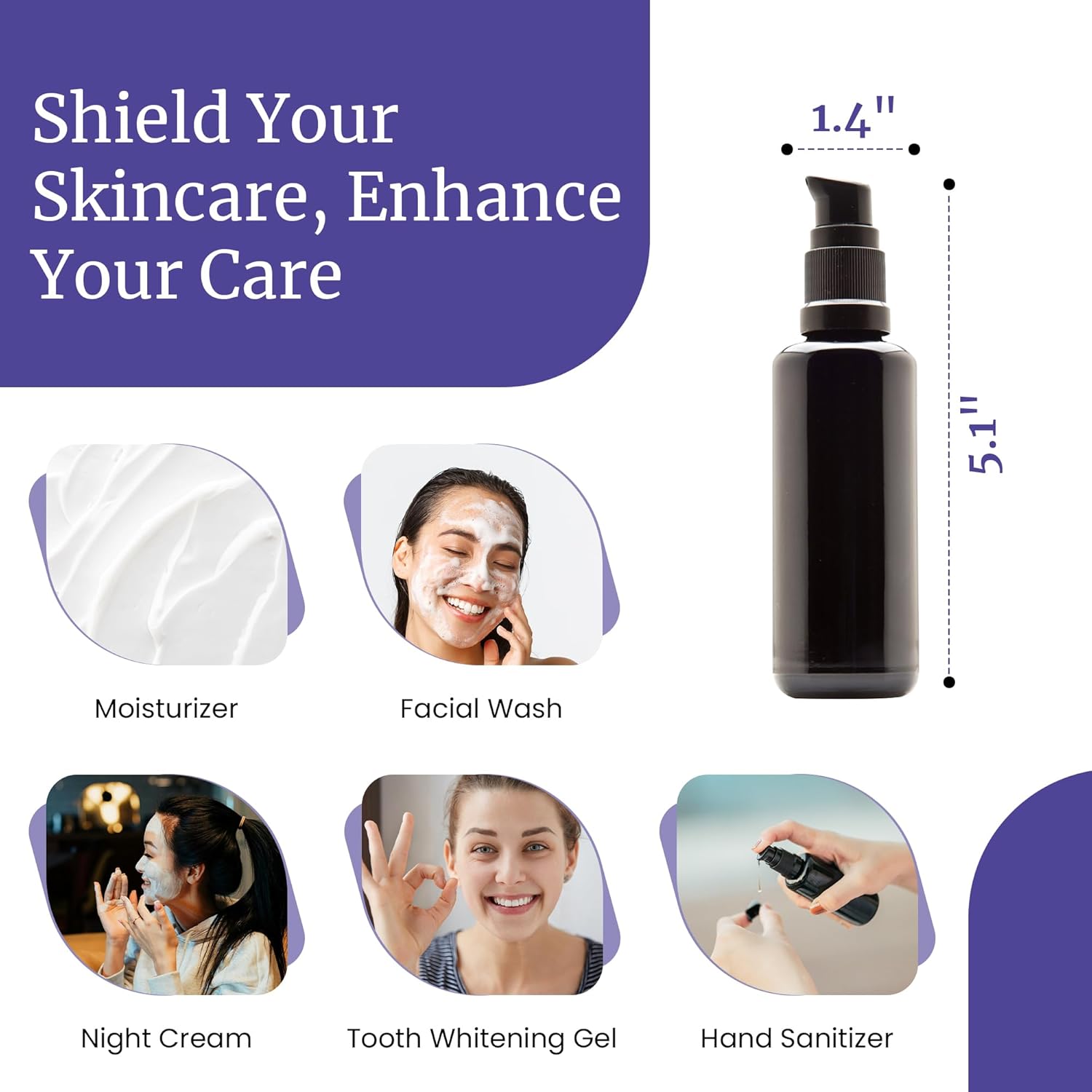 - Bottle Type : Glass, Refillable, Amber with Cream Pump Dispenser