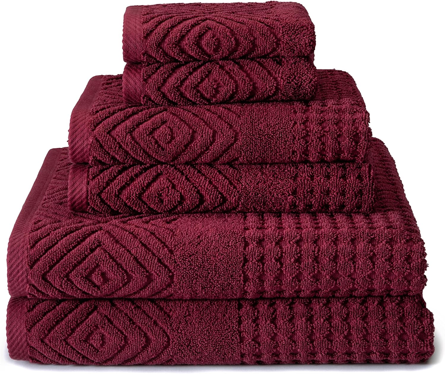 Texere 100% Organic Cotton 700 GSM Luxury Bath Towel Sets - Ultra Soft Hotel and Spa Quality, 2 Large Bath Towels, 2 Hand Towels, 2 Washcloths (Diamond, Merlot, 6 Piece)
