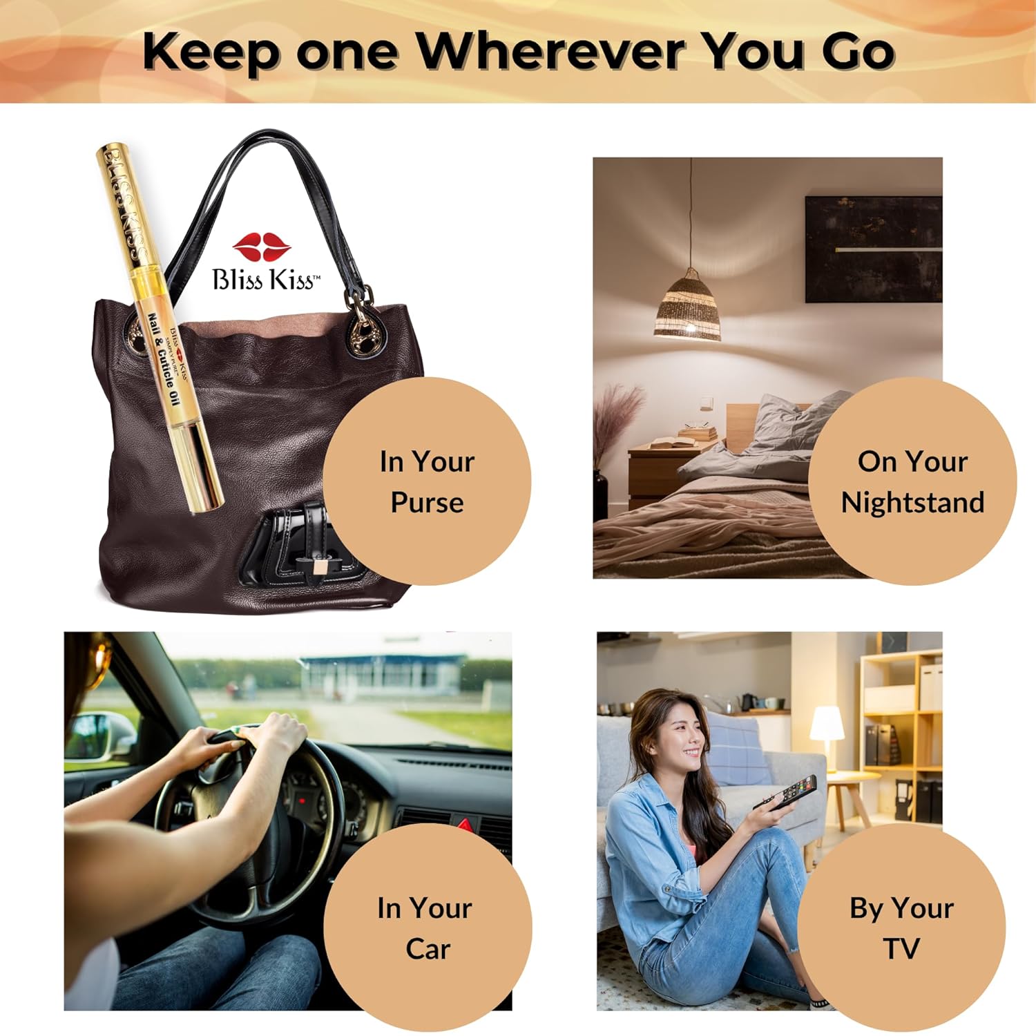 - Mess-Free, On-the-Go Application – The Bliss Kiss cuticle oil pen allows for precise, controlled nail strengthener and growth serum application without spills. Convenient nail growth oil for use at home, the office, or on the go.