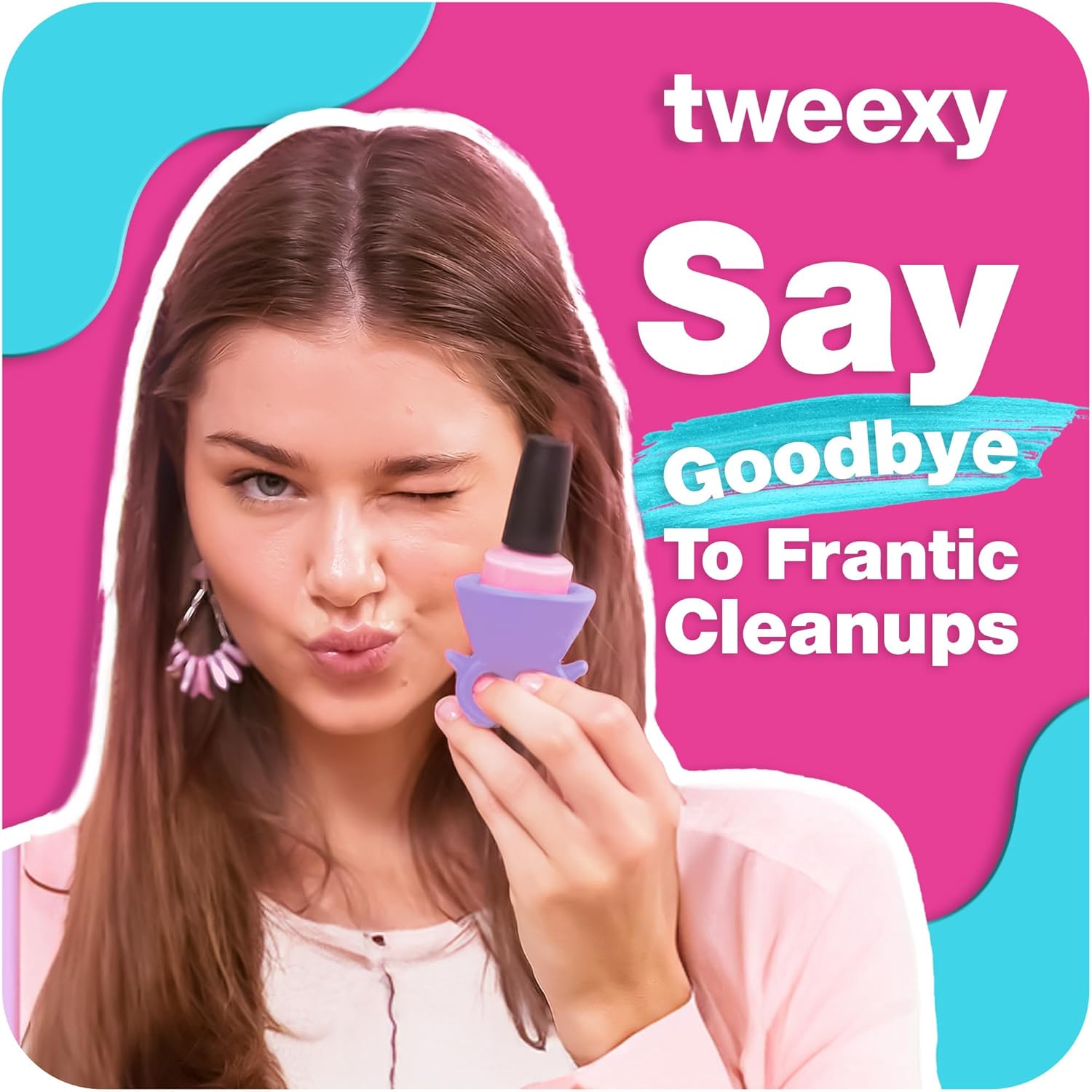 - THE SMARTEST NAIL TOOLS. Using the Tweexy nail polish holder is like having your own personal assistant. Gripping any pair of fingers like it’s a golden ticket, the patented Tweexy keeps your nail polish bottle firmly held while you quickly apply your polish more efficiently than ever before. Save time and effort with Tweexy.