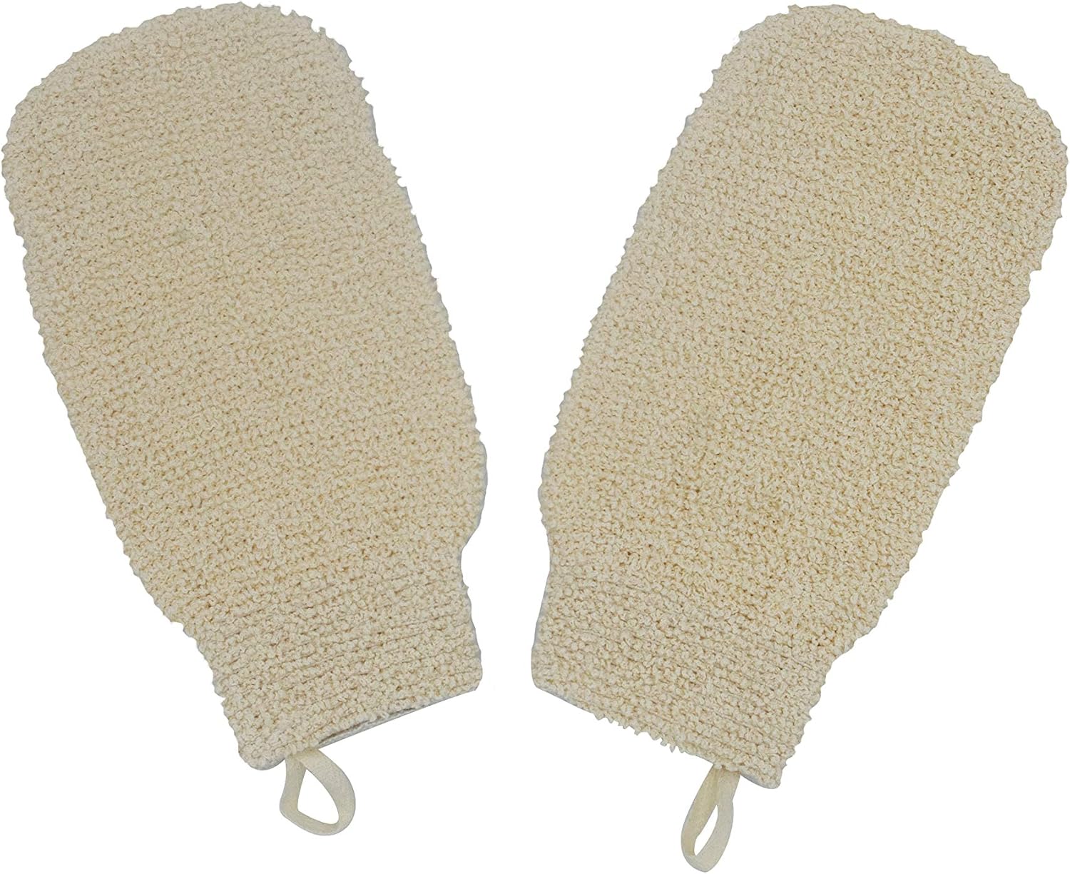 Natural Ramie Dual Sided Exfoliating Glove Hand Mitt Mitten Shaped Back and Body Shower Bath Scrubber White, Remove Dead Skin Machine Washable, Pack of 2