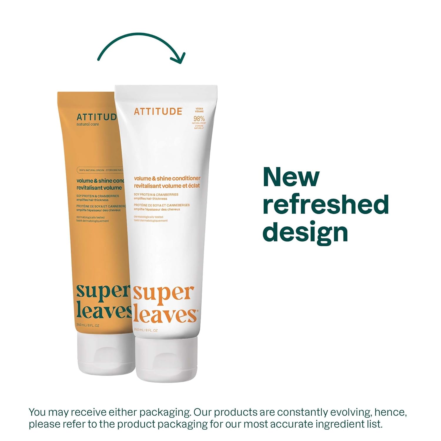 ATTITUDE Volume and Shine Hair Conditioner, For Thin Hair, Naturally Derived Ingredients, Vegan Detangler, Dermatologically Tested, Soy Protein & Cranberries, 8 Fl Oz