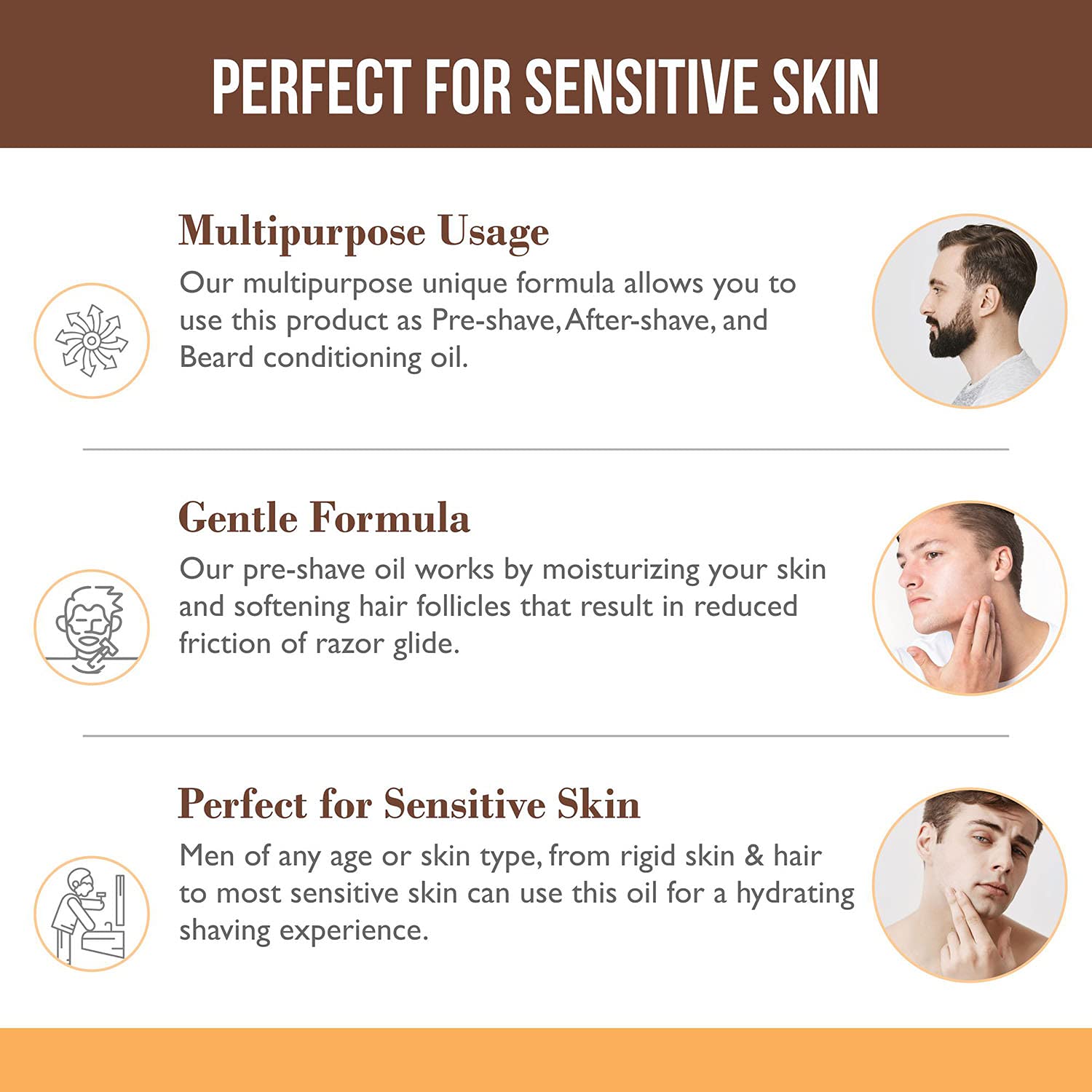 - β WHO NEEDS IT: Men of any age or skin type, from rigid skin & hair to most sensitive skin, our pre shave oil works equally great to protect your skin from razor burns, red bumps, ingrown hair, nicks or cuts. Skin loving oils like jojoba oil provides an extra layer of protection while leaving the skin hydrated aftershave.