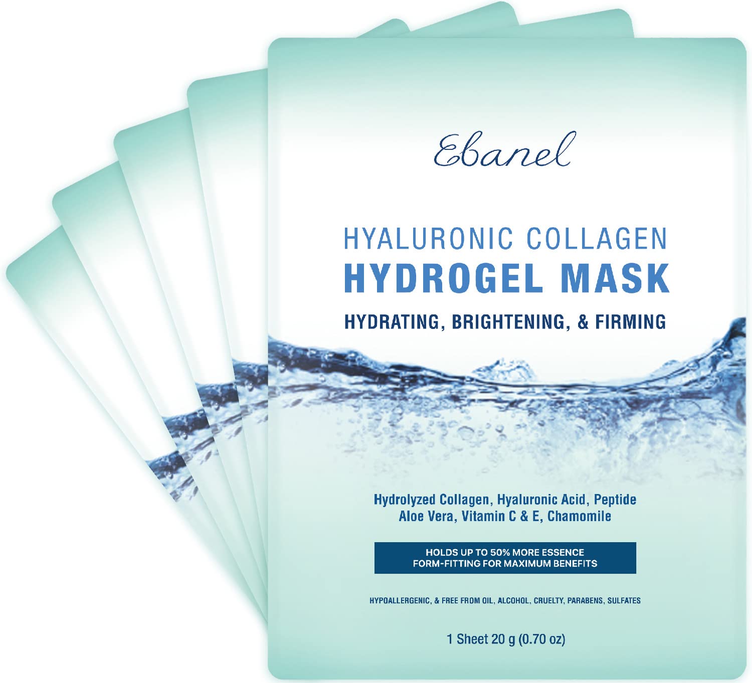 Ebanel 5 Pack Hydrogel Collagen Face Mask with Hyaluronic Acid, Vitamin C, Peptide, Aloe, Instant Brightening Hydrating Face Masks Skincare Korean Sheet Mask, Skin Firming, Lifting Anti Aging Masks