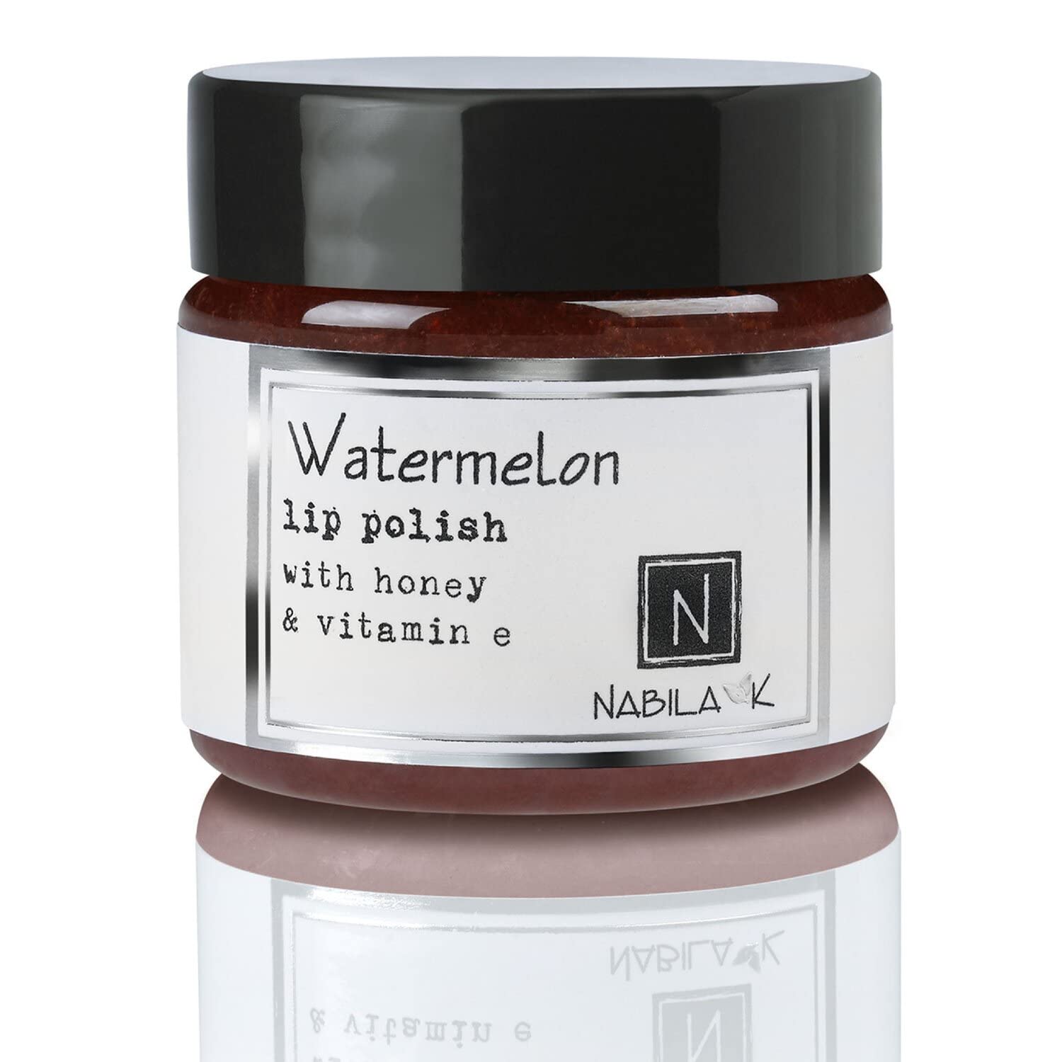 - Nabila K Watermelon Lip Polish is a natural, sugar-based lip polish scrub for dry lips. A lip exfoliator made with nourishing, real ingredients like sweet almond oil and honey smooth lips, leaving them feeling super soft. Sloughs off dry skin and flakiness to reveal beautiful, healthy lips.