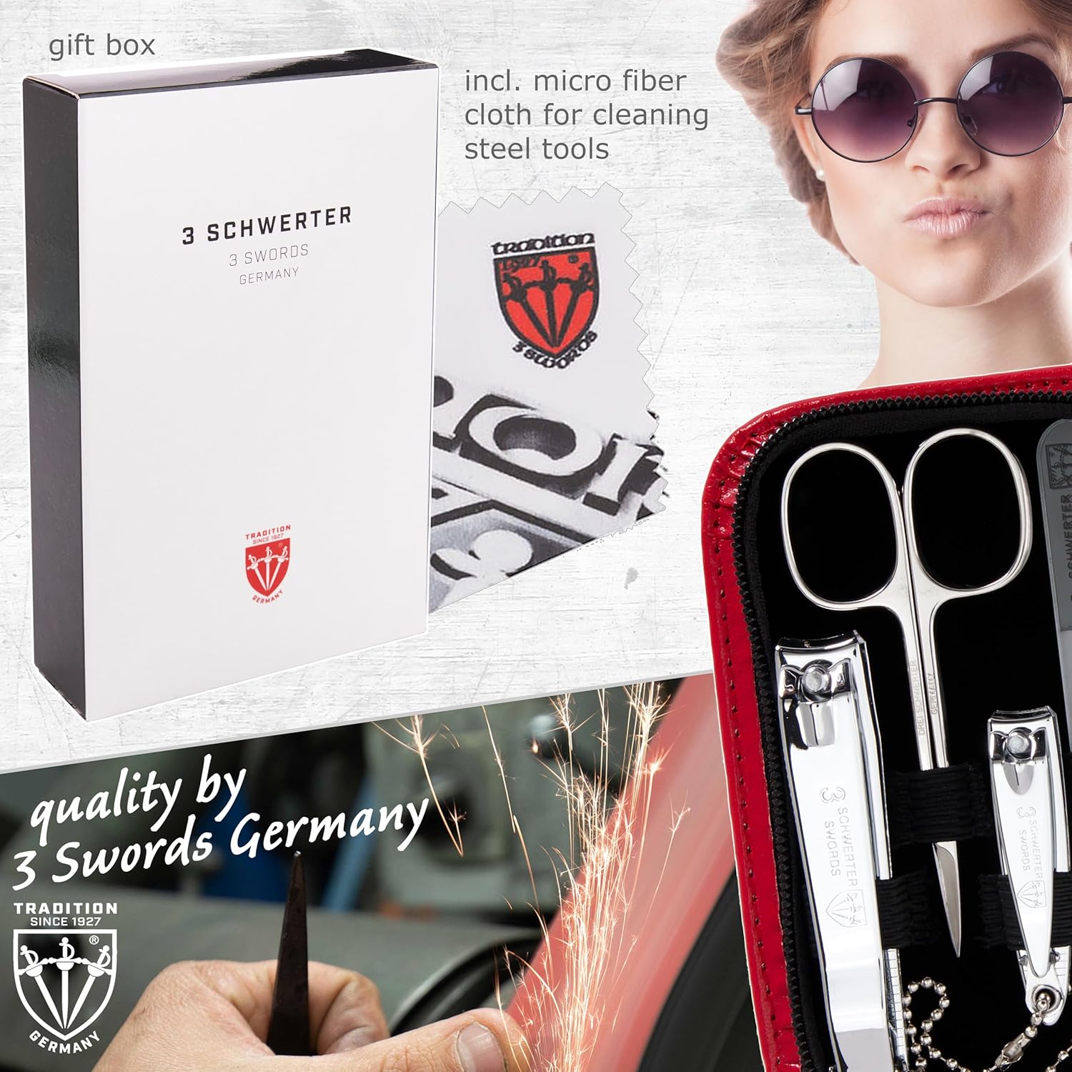 3 Swords Germany - brand quality 8 piece manicure pedicure grooming kit set synthetic leather case red - Made in Germany