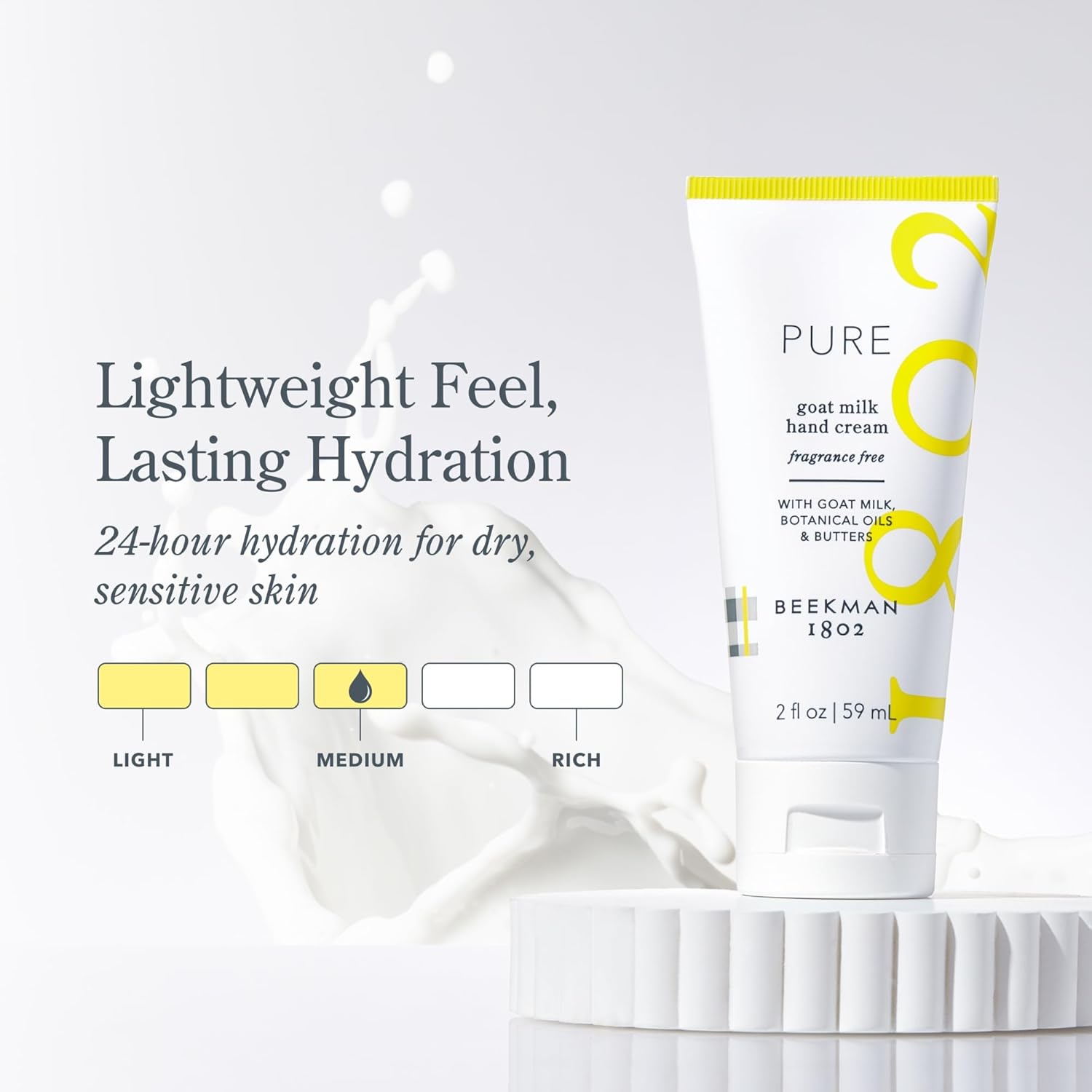 Beekman 1802 Goat Milk Hand Cream - Fragrance Free Hand Lotion For Deeply Hydrating All Skin Types - Lightweight, Non-Greasy & Sensitive Skin Safe - 2 oz - Packaging May Vary