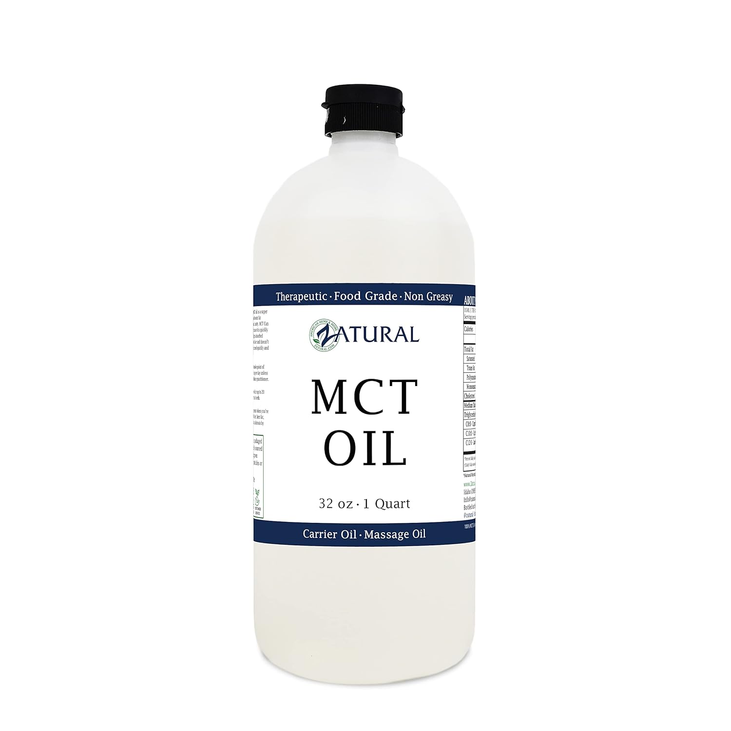 Pure MCT Oil, Carrier Oil, Massage Oil, Hydrating Oil, Hair Oil, Food and Therapeutic Grade, 32 Oz