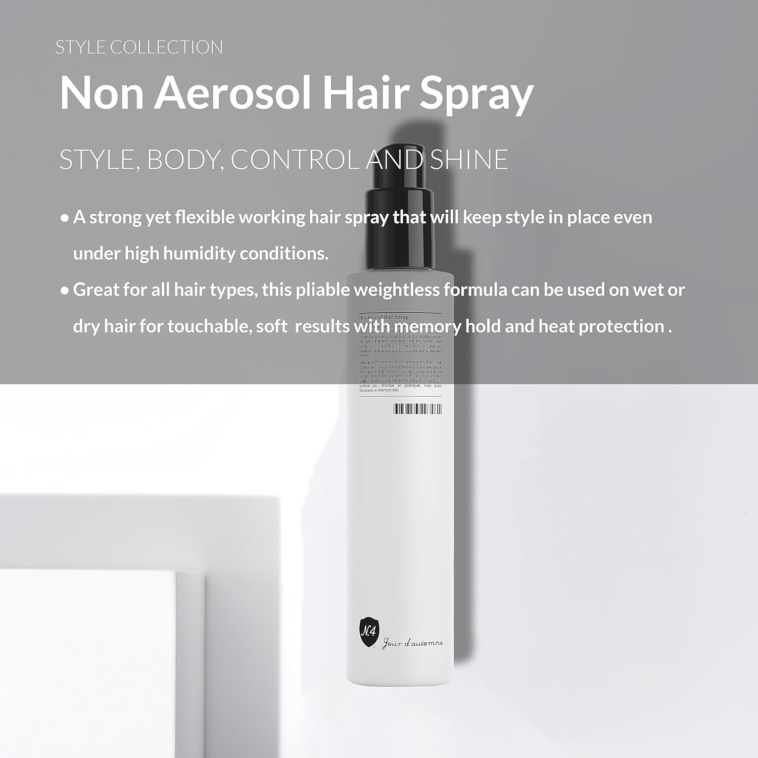 - Number 4 Hair Care 6.7 oz Non Aerosol Hair Spray: This workable hairspray delivers long-lasting hold that lasts throughout the day, while maintaining flexibility and avoiding stiffness. Pliable, weightless formula make it easy to manipulate styles without added weight or flaking.