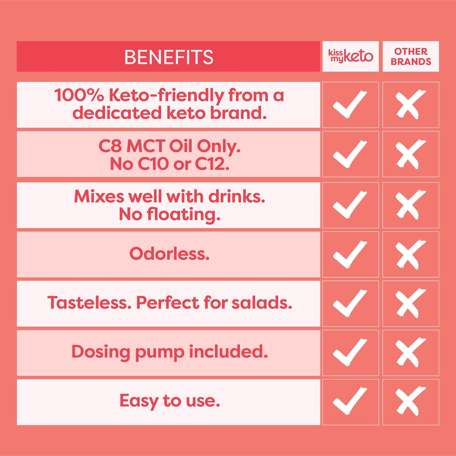 Kiss My Keto MCT Oil C8 – 32 oz Pure C8 MCT Oil Keto Fuel – Pure MCT Oil Bottle with Pump – High Octane MCT C8 Oil Caprylic Acid – Keto Pure MCT Coconut Oil Brain Fuel – Liquid Coconut MCT Oil Pure