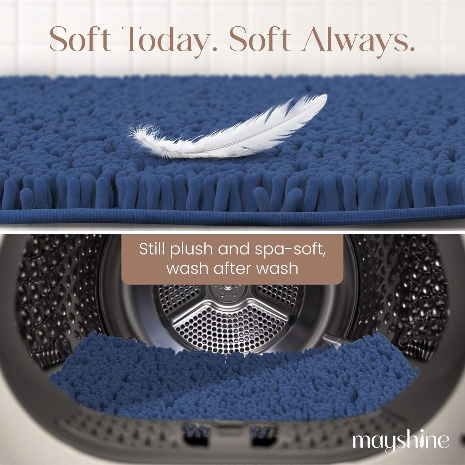 MAYSHINE Plush Shaggy Chenille Bath Mat | Extra Soft, Super Absorbent, Non-Slip Bathroom Rug | Fluffy Microfiber, Area Rug Sets for Bathroom Floor, Kitchen, Living Room | 32"x20" | Dark Blue