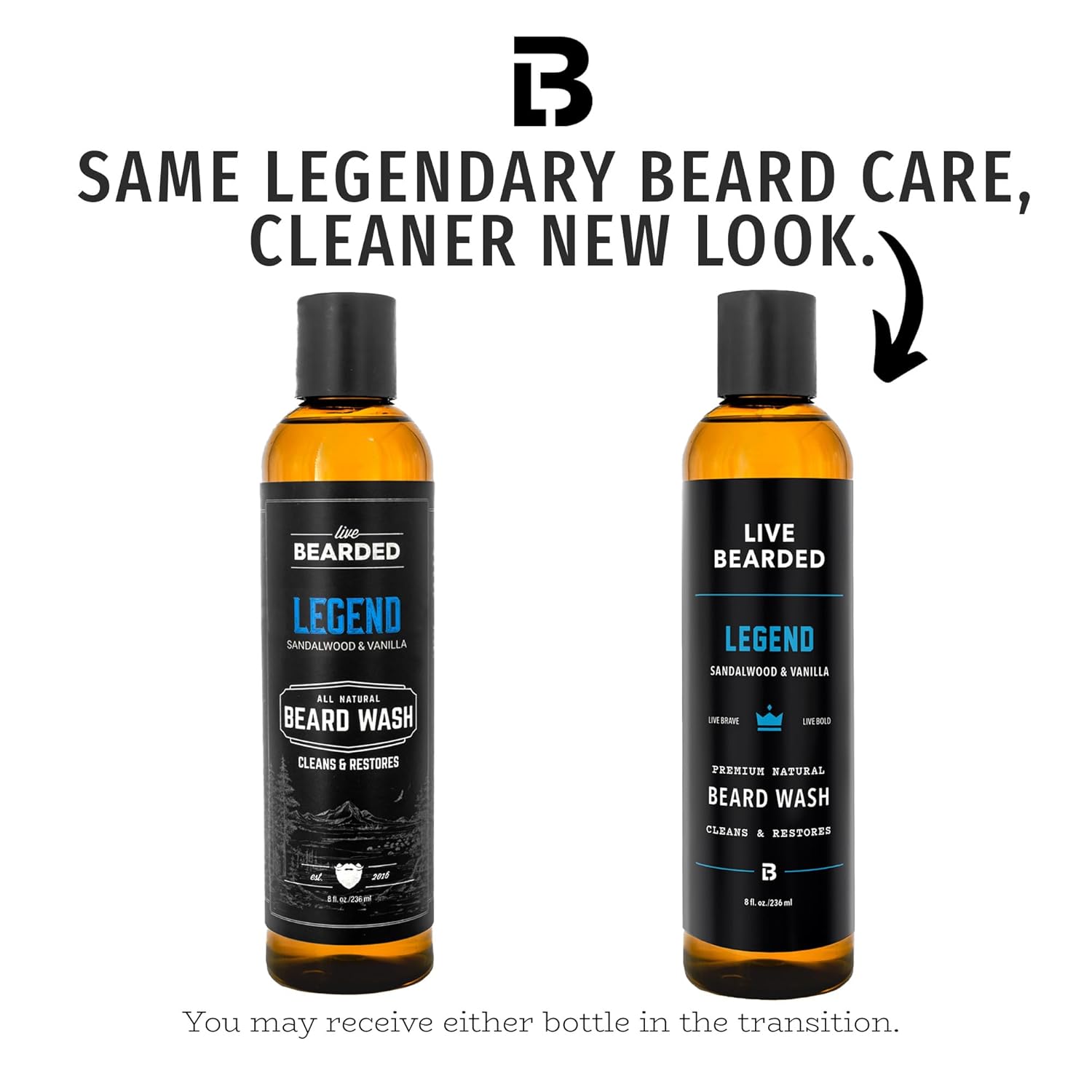 Live Bearded Beard Wash, 8 fl oz - Water-Based Face Cleanser with All-Natural Ingredients for a Gentle, Deep Clean - Made in the USA | Legend Scent - Sandalwood, Vanilla