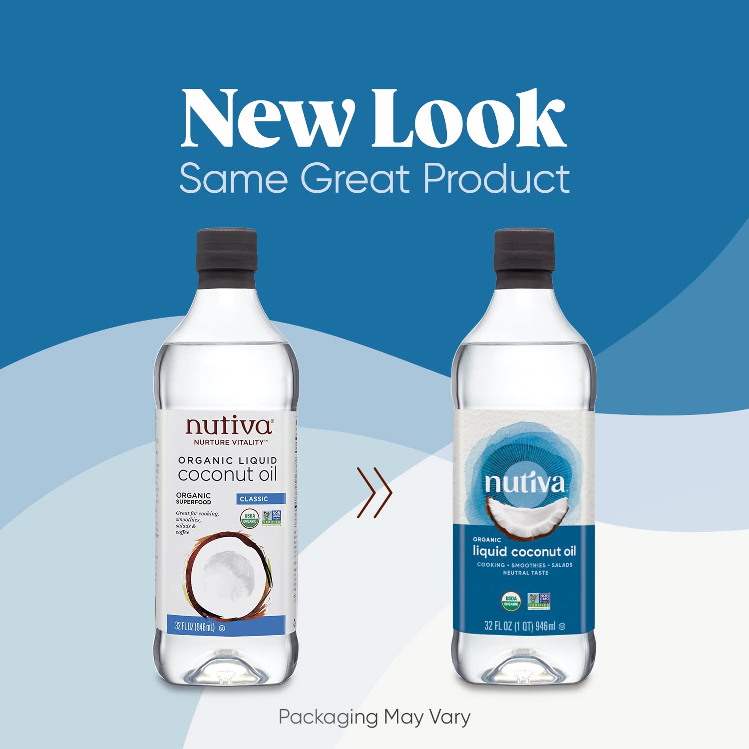 Nutiva Organic Liquid Fractionated Coconut Oil 32 Fl Oz - USDA Organic, Non-GMO. Edible, Pure Coconut Oil for Cooking, Moisturizer for Skin, Hair Treatment. Contains Natural MCTs.