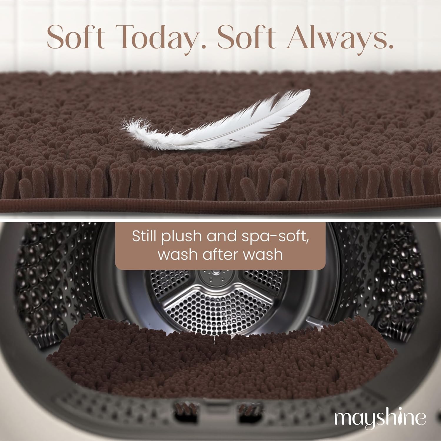 MAYSHINE Plush Shaggy Chenille Bath Mat | Extra Soft, Super Absorbent, Non-Slip Bathroom Rug | Fluffy Microfiber, Area Rug Sets for Bathroom Floor, Kitchen, Living Room | 47"x27" | Brown