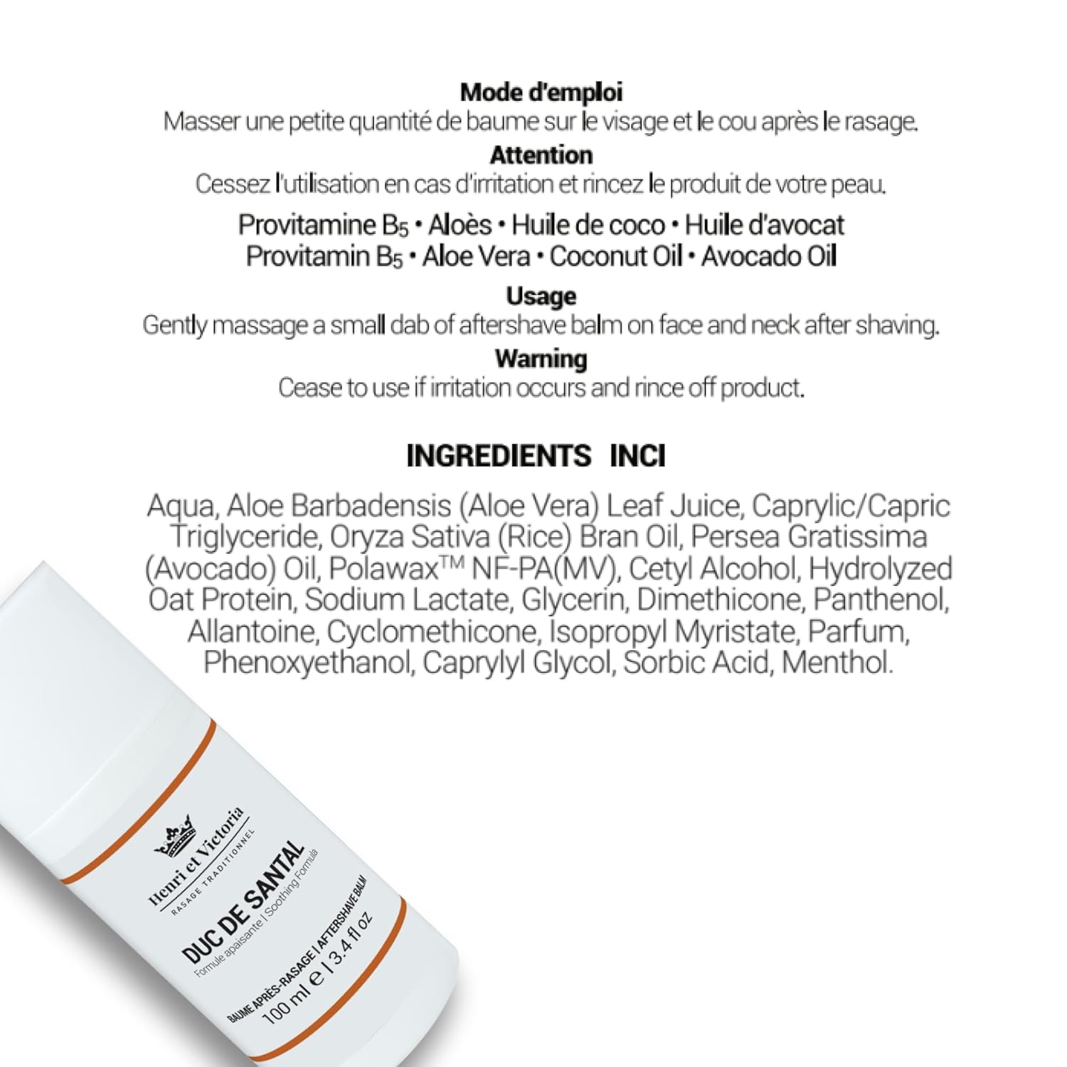 Aftershave for Men | Duc de Santal Chic and Subtle Scent | Canadian Made by Skilled Artisan | After Shave Balm Prevent and Cure Razor Burns | 100 ml (3.4 oz)