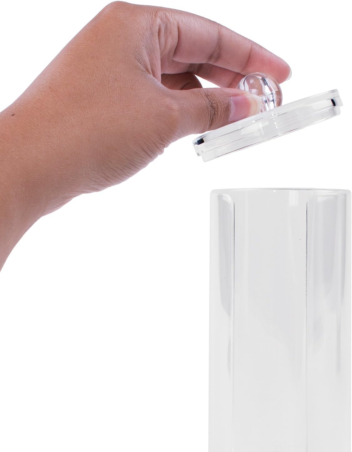 - Simple and sleek stylish clear design matches any decor and provides a fashion forward trend for your daily morning beauty routine. A simple tube-shaped design provides the organization space you need to store all your cotton pads!