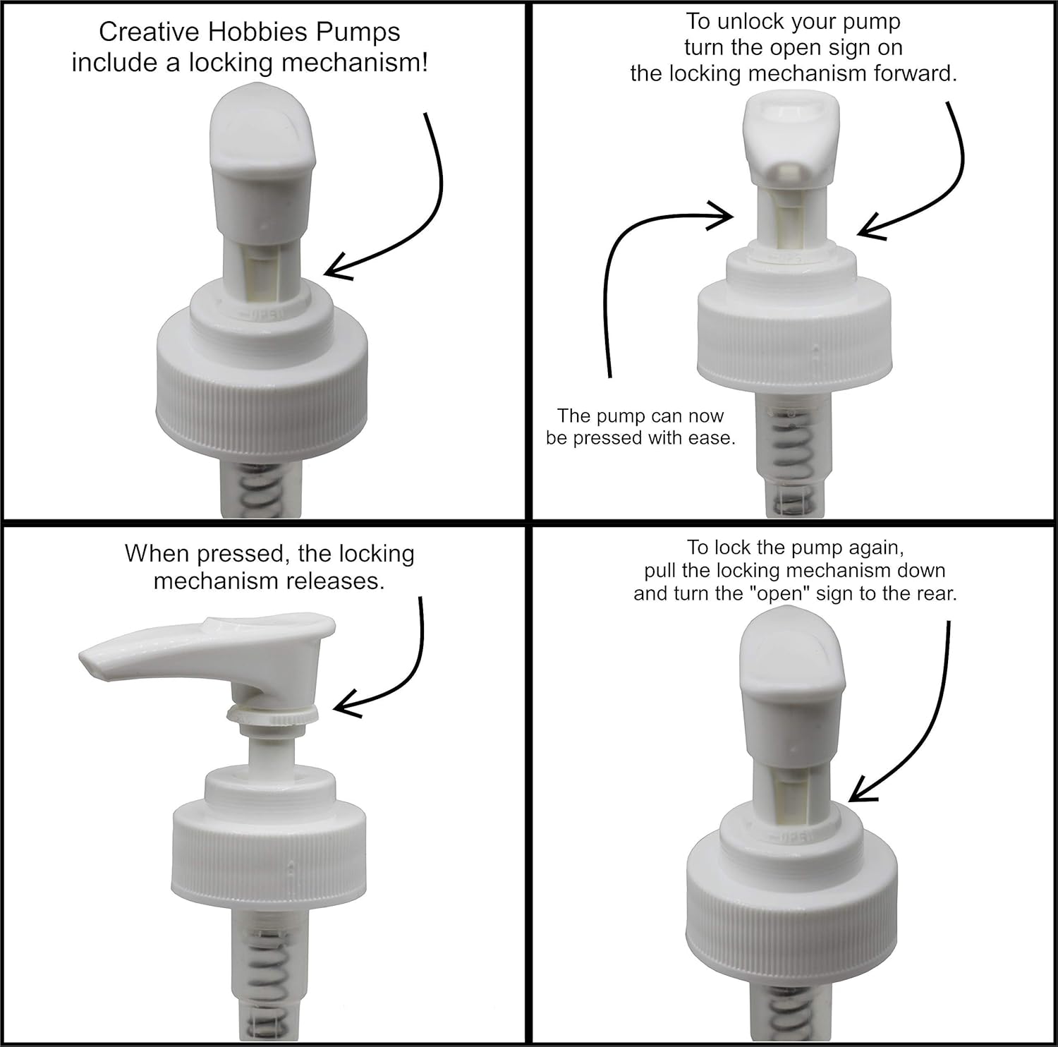- 6 Sets of Creative Hobbies White Plastic Dispenser Pumps with Screw Collars are great replacements for Soap and Lotion Jars or Bottles.