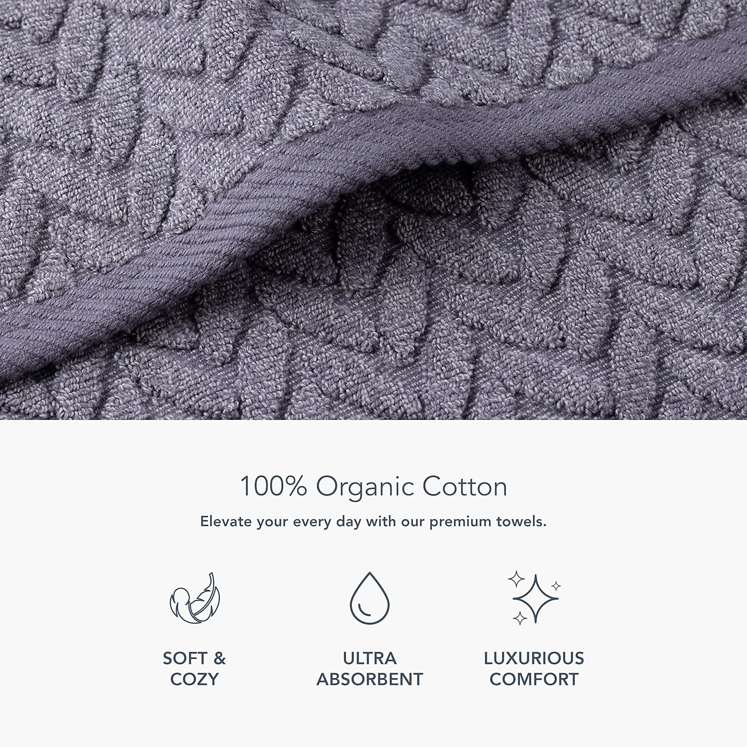 Texere 100% Organic Cotton Jacquard 650 GSM Premium Bath Towel Sets - Extra Absorbent Quick Dry and Plush (Cable, Excalibur, 2 Bath & 2 Hand Towels)