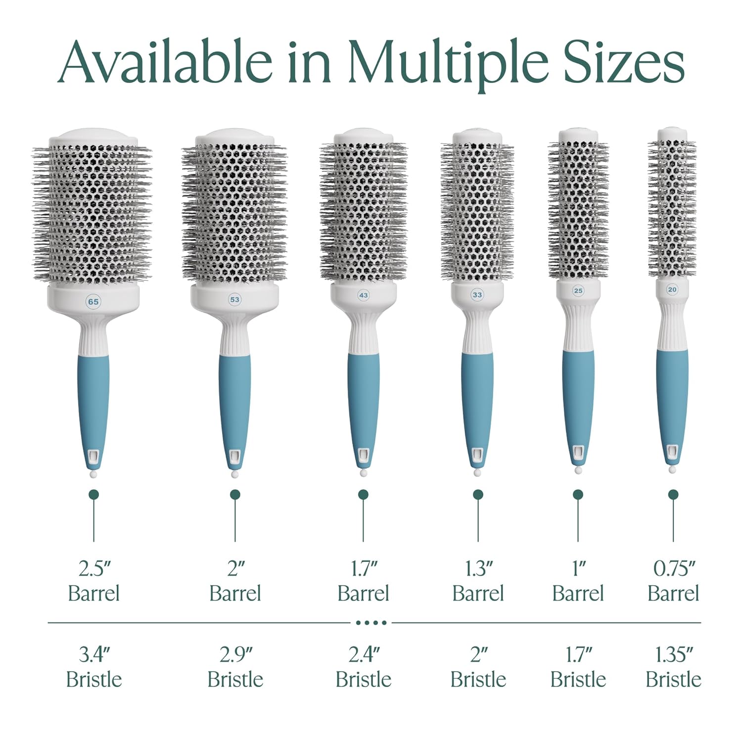 - IT'S ALL IN THE BRISTLES; Our 2.4 inches bristles with a barrel size of 1.7 inches are a whole lot more than what meets the eye, Not only are they antistatic, ionic mineral infused and naturally healthier for hair and maximum shine, but they’re also tough enough to withstand high heat, And the benefits don’t stop there, polished bristles gently massage the scalp and prevent against damage and breakage, while wavy bristles cover maximum area for styling with less effort