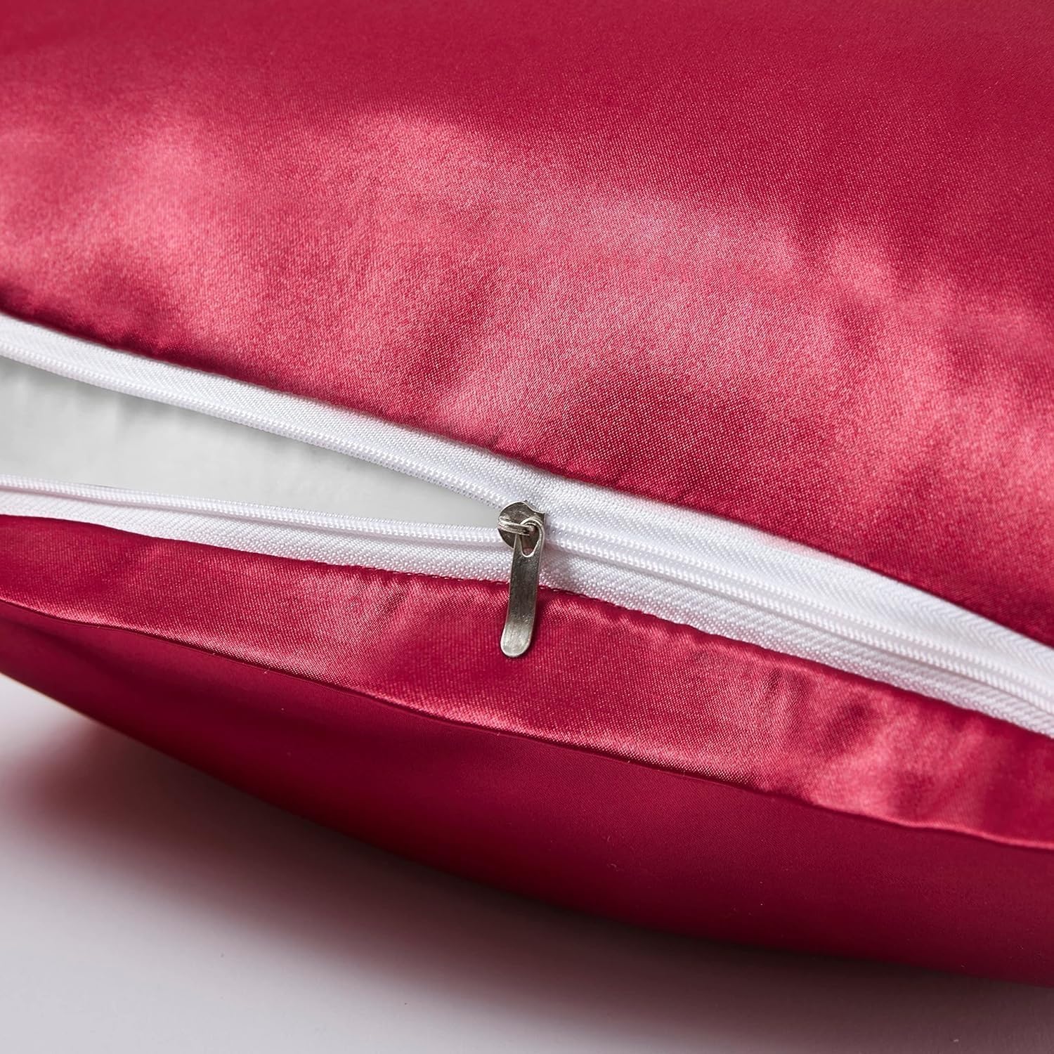 - PREMIUM QUALITY FABRIC:Our Satin Pillowcase is made with high quality 100% polyester fabric for optimal softness and easy care. These satin pillowcases are constructed from 100% polyester which gives it its smooth finish and exceptional longevity, even after extensive wash and wear.The hidden zipper closure prevents slipping and ensures that the pillow stays perfectly in the satin pillowcase. And the unique zippered closure is placed on one side, the satin pillow case can be used both sides.