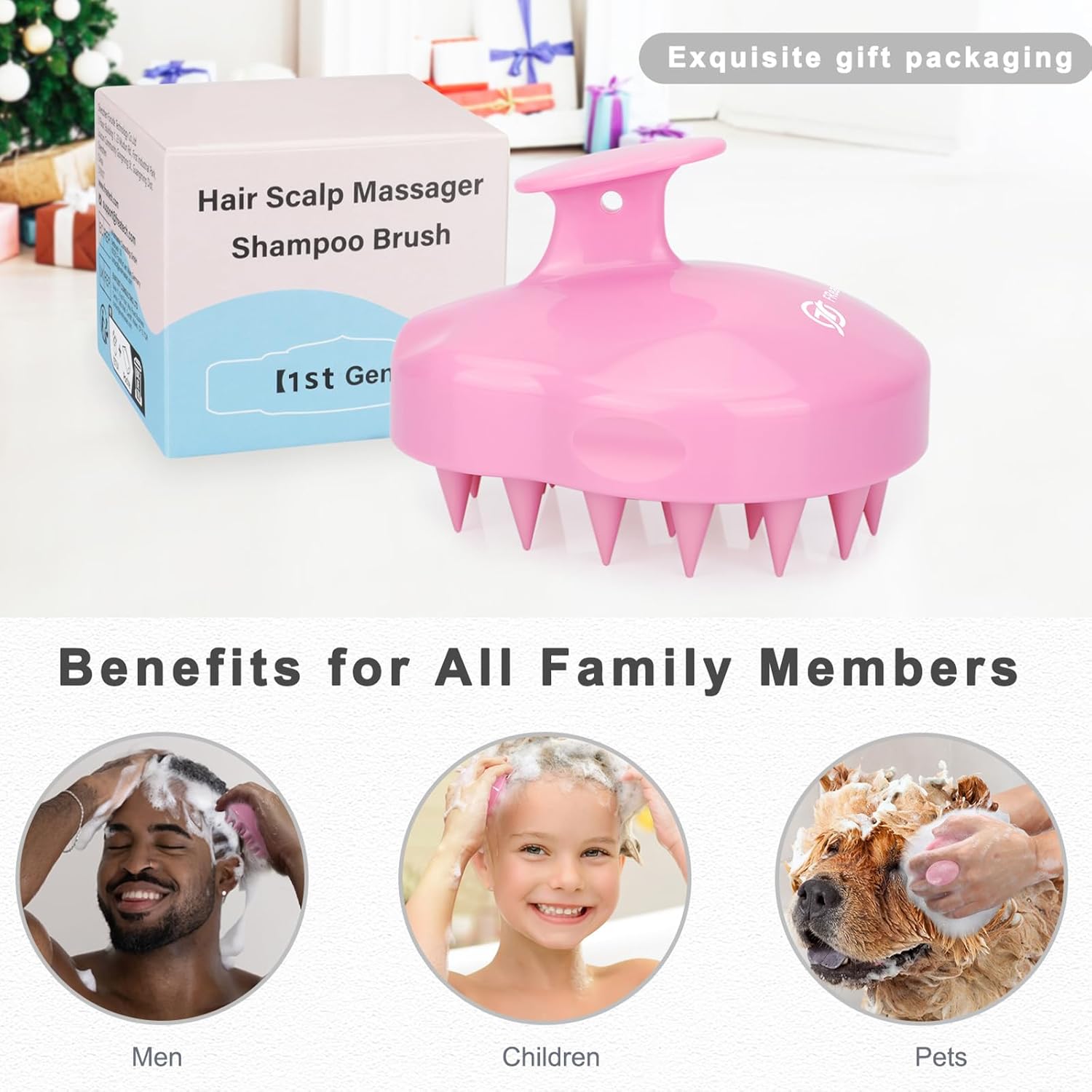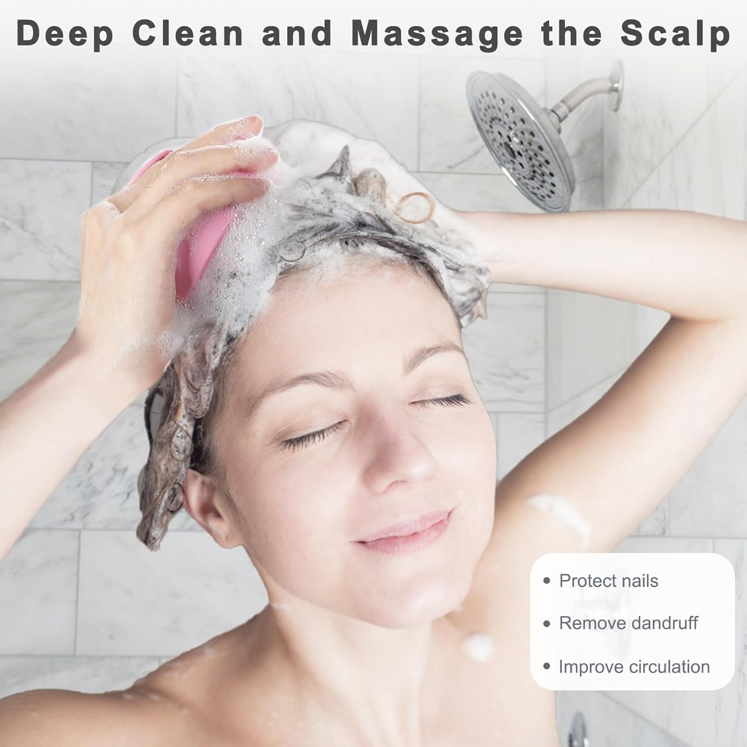 FREATECH Massager Shampoo Brush with Soft Silicone Bristles for Scalp Care, Shower Hair Scalp Scrubber Exfoliator for Dandruff Removal and Hair Growth, Wet & Dry for Men, Women and Kids, Pink